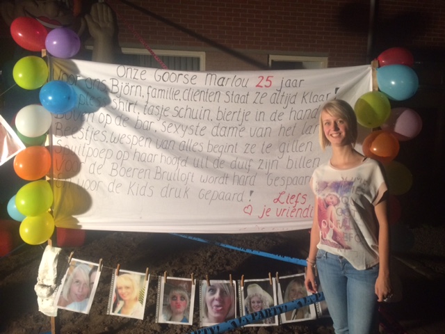 In de tuin aan J.C. Romijnlaan is gisteren door Lieke, Marijke, Els en Pauline een duidelijk spandoek geplaatst. De boodschap is niet te missen, hun vriendin Marlou is een halve Saar geworden. Marlou, namens je vriendinnen nogmaals van harte gefeliciteerd met je 25ste verjaardag!