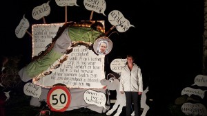 Antoinette Bannink-Overbeek wordt morgen 50 jaar, maar viert deze mijlpaal vanavond al (op haar trouwdag!). Geboren op het Zeldam, maar inmiddels al jaren woonachtig in de Stoelderhook, werd de kersverse Sarah gisteravond verrast met diverse poppen en spandoeken. Familie, buren en vriendinnen hadden zich uitgeleefd met diverse creaties waaruit bleek dat Antoinette een echte “duizendpoot” is, een “spin in het web” en uitermate handig. Ook de oud-bestuursleden van de KPJ kwamen hun voormalige collega-bestuurslid verrassen. Dat de deur van haar boerderij voor de vrienden en vriendinnen van haar (4) kinderen altijd open staat bleek uit een spandoek waarin de jeugd haar gastvrijheid (en die van haar man Arie) roemde. Bovendien riepen ze haar op om de Dino-dans te doen. Of het zover komt zal vanavond blijken!