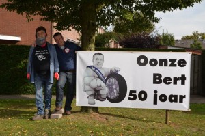 Hoewel hij eerst nog bang was voor nieuwe kaveluitgifte op de groenstrook voor zijn woning vanwege het afgezette gebied bleek dit te toch te gaan om het veilig stellen van grond. Het afgezette stuk grond was gereserveerd voor een enorme Abraham die gisteravond met nog een aantal kleinere Abrahams werden geplaatst aan de Romijnlaan. De reden is overduidelijk! Bert Greven is vandaag 50 jaar geworden. Gisteravond was het dan ook gezellig druk aan de Romijnlaan en bleef het nog lang onrustig in de buurt. Familie, buurt, kameraden, vrienden en Dorpsfeest Markelo feliciteren Bert dan ook van harte met zijn 50ste verjaardag en wensen hem nog vele jaren in goede gezondheid toe.