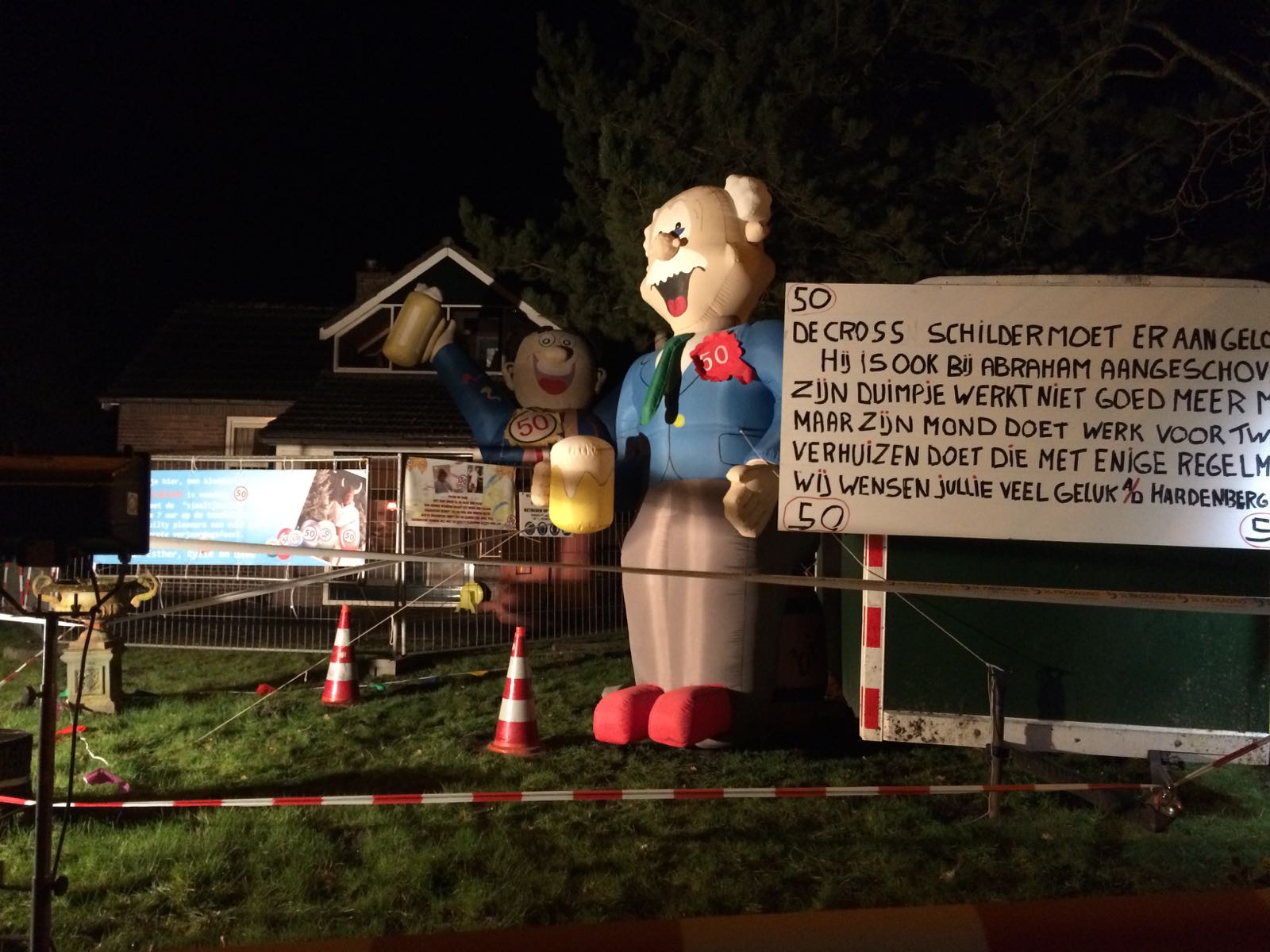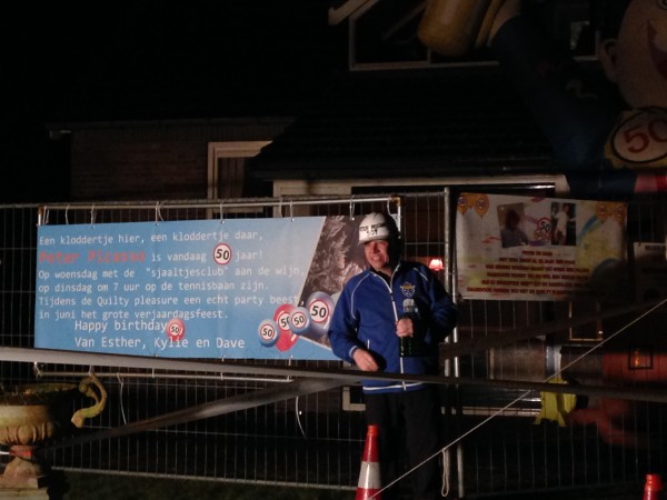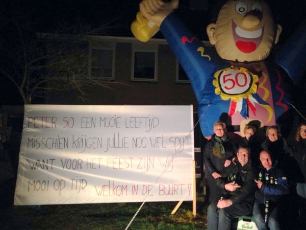 Familie, de motorclub en de kameraden van Peter Assink hebben gisteravond niets aan het toeval overgelaten. Vol overgave werden diverse spandoeken geplaatst, de tuin versierd met lint en pionnen en er werd zelfs een grote mast geplaatst in zijn tuin aan de Oude Rijssenseweg. Ook bij de nieuwe woning aan de Hardenbergstraat werd er goed versierd en dat allemaal om Peter vooral niet te laten vergeten dat hij vandaag zijn 50ste verjaardag viert. Peter namens allen, wensen zij jou een fijne verjaardag toe!
