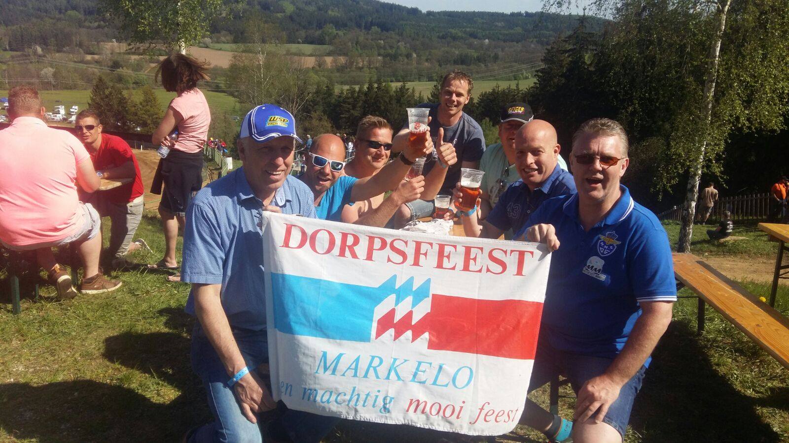Met nog ruim drie maanden te gaan voordat de enorme Dorpsfeestvlag staat te schitteren in het centrum van Markelo begint het aankomende Dorpsfeest bij de Markeloërs toch hier en daar weer te kriebelen. De Dorpsfeestvlag is weer op reis gegaan voor een weekendje GP zijspancross in Tsjechië in de plaats Kramolin met Alex Daalwijk, Peter en Arie Tjoink, Hans Groenouwe, AJ Nijland, Willem Kempers en Johan Smit.