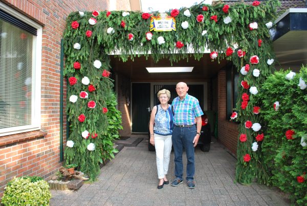 Alweer vijftig jaar geleden op 3 juni 1966 stapten Jan-Willem en Leida Geerligs in het huwelijksbootje. De buren van het Wansink plaatsten woensdagavond volgens traditie een prachtige boog die natuurlijk uitvoerig gekeurd werd door het 50-jarige bruidspaar. In de tuin werd nog lang nageborreld. Dit weekend gaat het gouden paar nog even door met feesten! Jan-Willem en Leida; namens de kinderen, kleinkinderen en de buurt van harte gefeliciteerd met jullie gouden huwelijk!