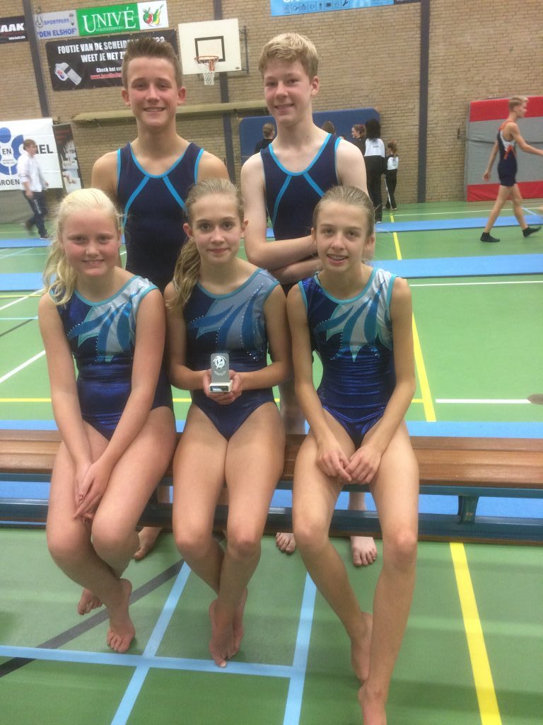 Afgelopen zaterdag vonden de Provinciale Springwedstrijden Turnen voor junioren plaats in Groenlo. Om de turners zoveel als mogelijk op zijn of haar eigen niveau te laten springen hebben Gymvereniging Markelo, DGV Diepenheim en GV Exelsior hun krachten gebundeld en gezamenlijke teams gemaakt onder de naam ‘Hof van Twente’. Bo Nijenhuis, Jente ten Donkelaar, Kristel Leensen, Renske Groen, Aniek Laarhuis, Hinke Slaghekke, en Meike Huitink kwamen uit voor GV Markelo. De teams wisten onder meer een eerste plaats op het onderdeel Pegasus in de wacht te slepen waardoor zij zich een jaar lang Provinciaal Kampioen mogen noemen. Daarnaast werd er een tweede plek behaald op het onderdeel trampoline tafel als ook bij de airtrack.