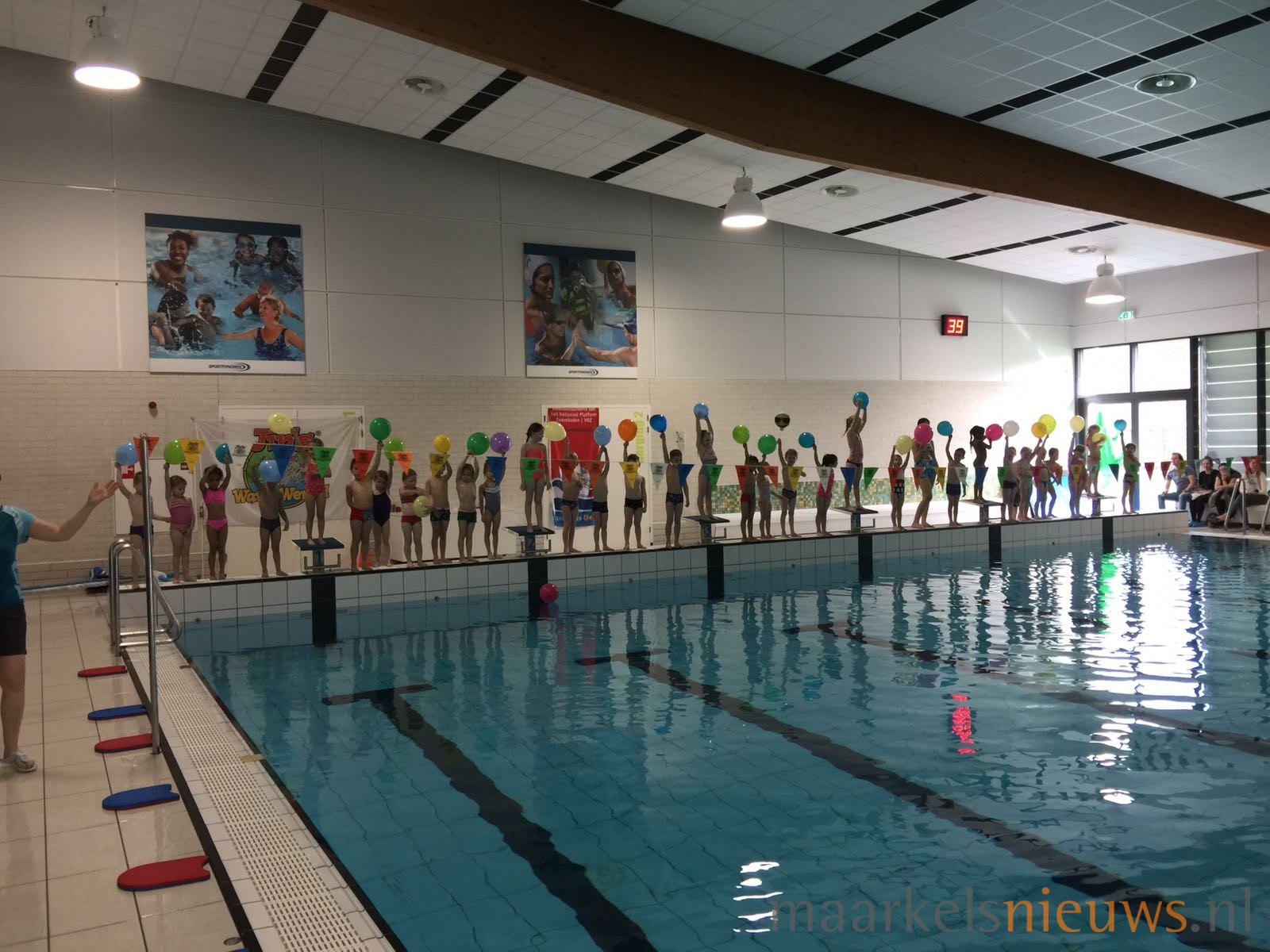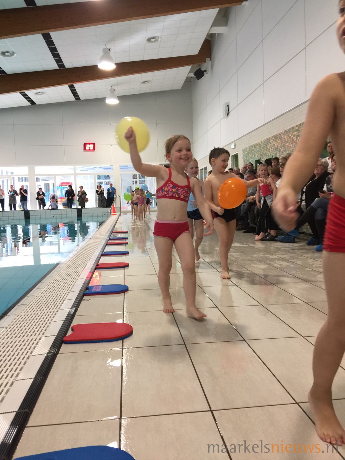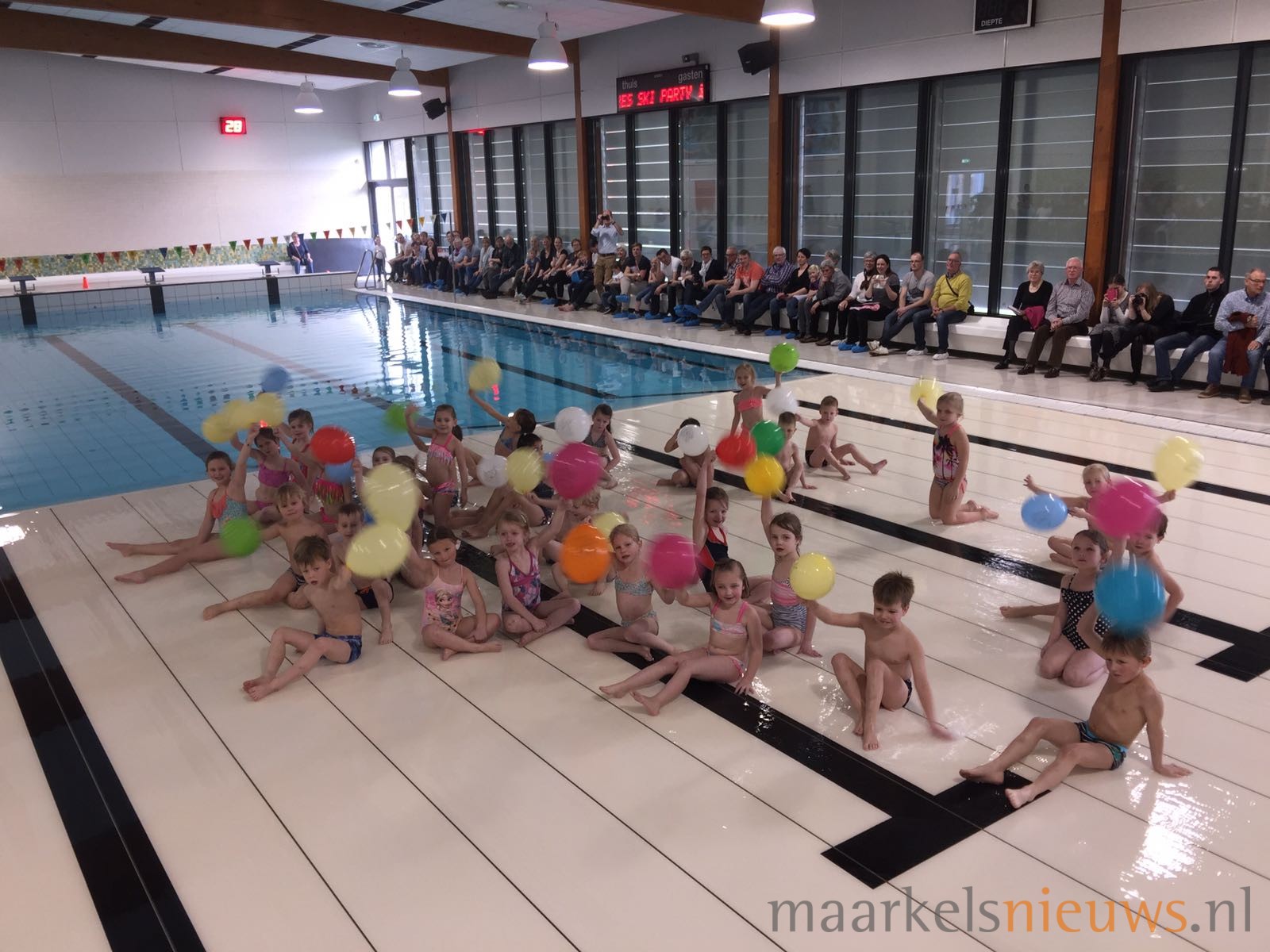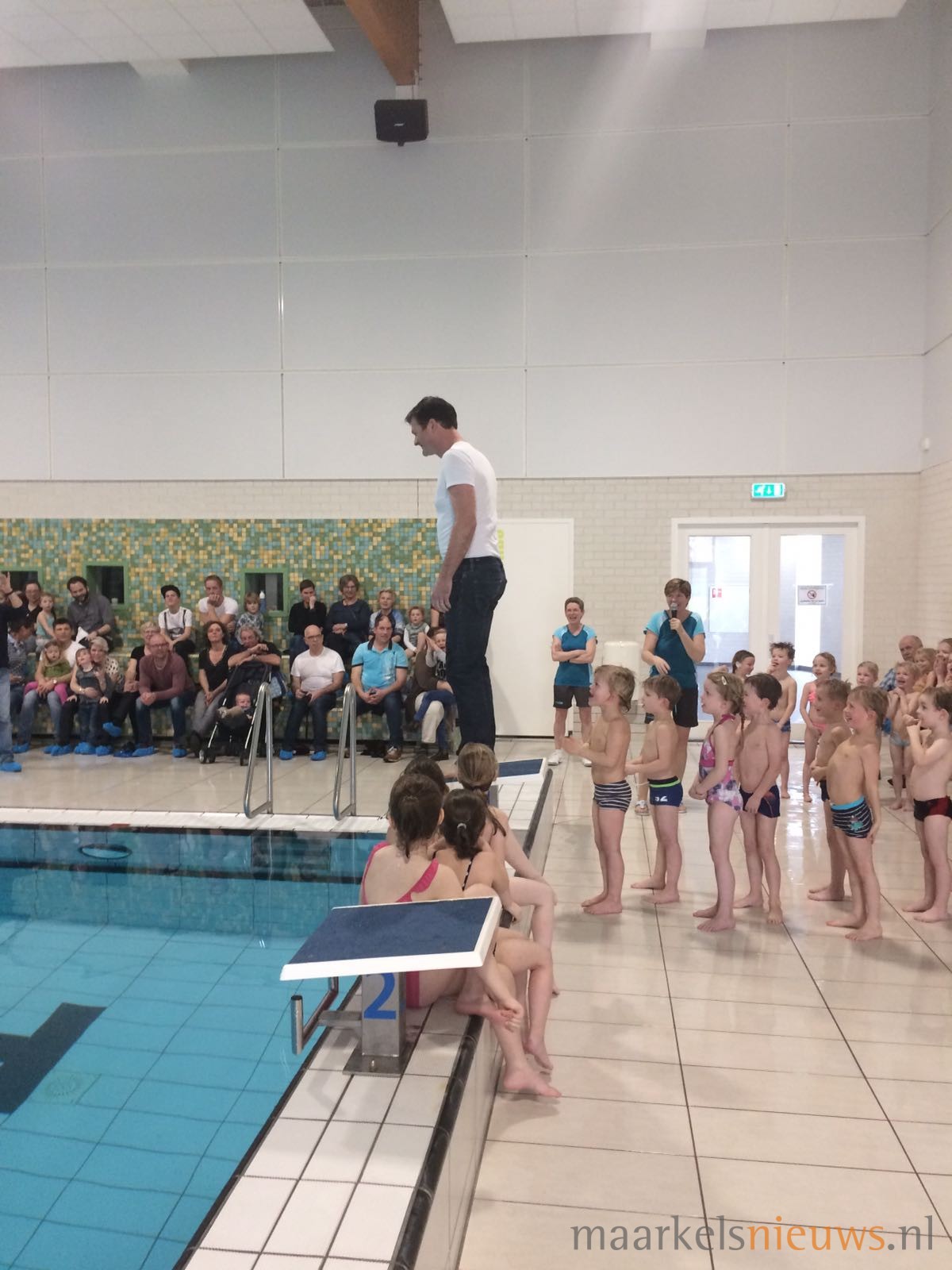 In het Sportfondsenbad “De Vijf Heuvels” hebben gistermiddag weer heel veel kinderen afgezwommen voor hun A, B of C diploma. Tijdens een van de eerste stralende lentedagen was het net als altijd tijdens het diploma-zwemmen weer overduidelijk feest aan de rand van het bad. Badjuf Anja kon het natuurlijk ook nu niet laten om een trotse papa uit te dagen en de kinderen te laten zien hoe zij door ‘het gat’ moesten zwemmen, en met een positief resultaat natuurlijk. Maar liefst 67 kinderen kregen uiteindelijk uit handen van het badpersoneel op deze feestelijke middag, hun dik verdiende diploma A, B of C.