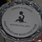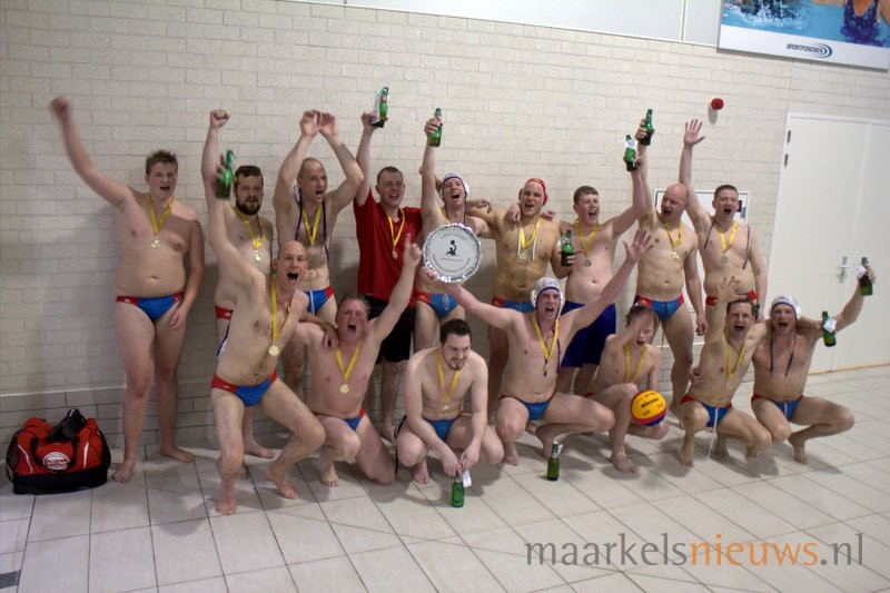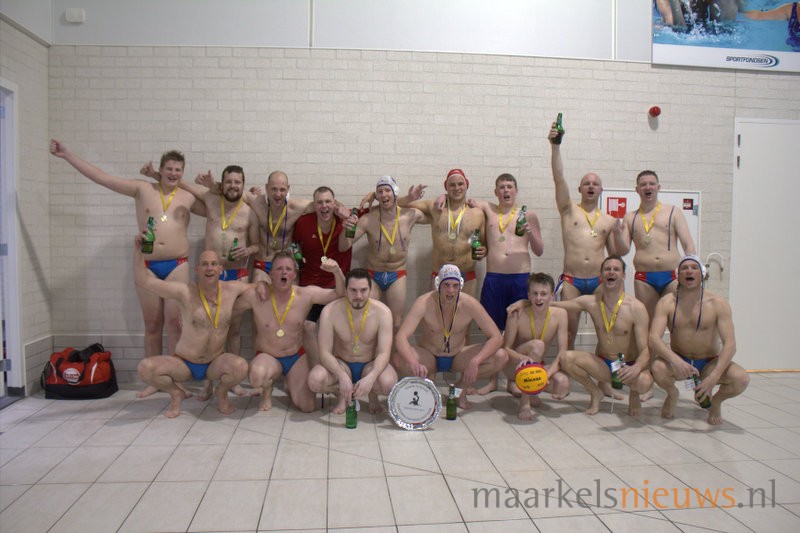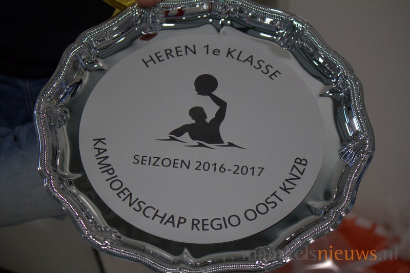 Voor de Heren 1 van ZPC De Hof stond vandaag aan het begin van de avond een thuiswedstrijd op de kalender tegen Thetis uit Bemmel. Nadat vorige week de eerste kansen op het kampioenschap waren verspeeld in en tegen de directe concurrent Nunspeet, werd vandaag veel van ze verwacht. In een overvol zwembad De Vijf Heuvels begonnen de heren van Arno Knopers erg voorzichtig, maar hebben geen moment het kampioenschap op het spel gezet. Met een volle bank zijn de heren rustig begonnen, maar door goed samenspel en goede individuele acties, onder meer van keeper Guido de Vries werd het een mooie wedstrijd. Het publiek kreeg waar voor zijn geld. In de aanval kreeg de Hof veel ruimte en tijd. Kansen werden benut door de vaste spelers Bart Kerkdijk, Ruud Wolf, Bob Huisken en Ruben Nijlant, maar ook de jeugdspelers Mike Lammertink en Timber Heitink wisten te scoren. Na 4 keer 6 minuten was het kampioenschap een feit. Met op het scorebord de stand 13-6 kregen de heren onder luid applaus de medailles met de kampioensschaal uitgereikt door de KNZB Regio Oost.