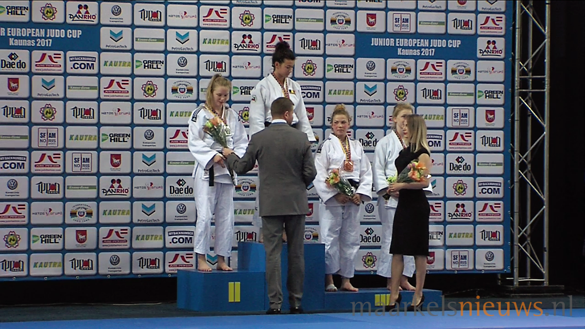 Voor haar derde Europacup deelname dit jaar stond de Markelose Hilde Jager gisteren op de judomat in Kaunas in Litouwen. Nadat ze de eerste ronde een vrijloot had won ze achtereenvolgens in de volgende rondes van drie judoka’s. In de finale ontmoette ze de Belgische Gabriëlla Willems. De finale was een spannende partij die lange tijd gelijk op bleef gaan totdat in een grondgevecht de Belgische, grip kreeg op een arm van Hilde en haar kon laten aftikken. Een verloren finale maar toch weer een prachtige zilveren medaille voor Hilde die dus wel goed op weg lijkt te zijn naar volledig herstel van haar blessure.