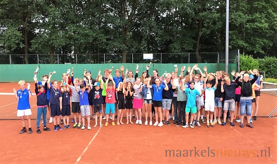 Afgelopen week werd het jaarlijkse Open Markelo Jeugdtennistoernooi gehouden op de tennisbanen van MTV’65. Maar liefst 70 enthousiaste kinderen deden mee in verschillende categorieën. Een zeer mooi aantal voor de toernooileiding. Het werd een leuke, gezellig maar vooral sportief toernooi met heel veel spannende wedstrijden. De weersomstandigheden waren nogal wisselvallig de afgelopen week, maar toch wist de toernooileiding er elke dag in te slagen alle wedstrijden af te ronden door soms ook uit te wijken naar de tennishal. In totaal werden er de gehele week maar liefst 137 wedstrijden gespeeld.