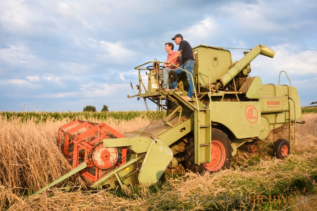 Onder het toeziend oog van vele liefhebbers is vanavond het speltakker aan de Noordachtereschweg op infinitief van MarkeLokaal gedorst met een 50 jaar oude combine. Binnen het uur was de klus geklaard en was de speltakker bedekt met platliggend stro en was de spelt klaar om afgevoerd te worden. Vele gezellige gesprekken vonden plaats onder het genot van een hapje en een drankje van Bistro de Tasca. Geheel in stijl werd de drank goed koud gehouden op alternatieve wijze en werd het geheel op de weide opgevrolijkt met een trekzakmuziekje van Martin Krijgsman.
