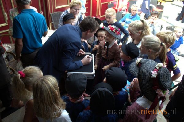 Dieka van de Kruusweg stond vandaag in het teken van het 60-jarig jubileum van de Kindergroep van de Folkloristische Vereeniging Markelo. Het jubileum dat de naam ‘Maarkels Diamant’ droeg stond oorspronkelijk gepland in het openluchttheater ‘De Kösterskoele’. Het Markelose uitgaanscentrum was een goed alternatief. De vele aanwezige oud-leden van de Kindergroep konden in de koepel bij Dieka bij een uitgebreide fotoreportage van alle Markelose kindergreoepen uit de jaren 1957-2017 herinneringen ophalen. Door de huidige Kindergroep werd tweemaal een poging gedaan om een record neer te zetten. Met 92 danskoppels wilden ze het record Twee emmertjes water halen gaan verbeteren. De Grosmeijers, Stonegood en kinderdansgroepen uit Diepenheim en Emmen zorgden voor geweldige optredens tijdens het 60-jarig jubileumfeest. Een springkussen en een goochelaar zorgde voor passend kindervermaak.