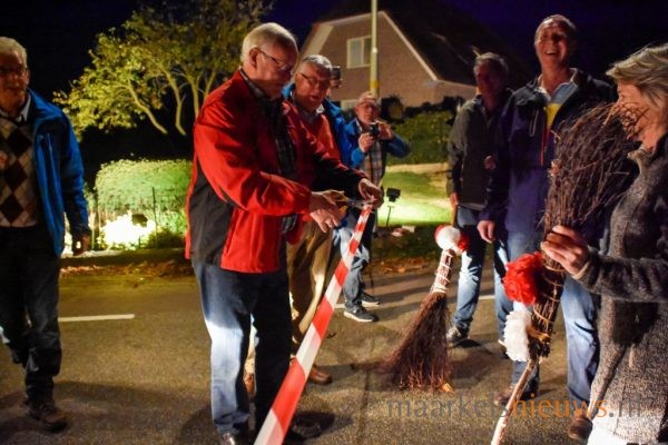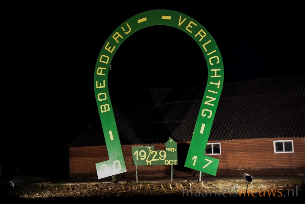 Met het omdraaien van een schakelaar werd gisteravond aan de Roosdomsweg de boerderijverlichting 2017 officieel geopend. Door deze handeling werd de ereboog bij het begin van de verlichtingsroute in de schijnwerper gezet. Dat gebeurde door Henk Hondelink in aanwezigheid van bestuur en vrijwilligers van de Stichting Boerderijverlichting en de buurtbewoners. Ook de jury die de creatieve voorstellingen langs de route moet beoordelen was present. Henk Hondelink gaf in een kort openingswoord aan dat hij al meteen nadat hij in Markelo kwam wonen met de boerderijverlichting in aanraking kwam. “Toen werd de route nog gecombineerd met straatversiering in het dorp. Het pleintje waar wij toen woonden won de eerste prijs maar belangrijker was dat de bewoners van ons plein, die elkaar toen nog nauwelijks kenden, door de pleinversiering elkaar vonden in een saamhorigheid. En die saamhorigheid is nog steeds een kenmerk van de boerderijverlichting. De creatieve uitingen door de buurten zullen daar ook dit jaar weer van getuigen”, zei Henk. Hij benadrukte ook de promotionele waarde van het evenement. “De naam Markelo zal weer op veler lippen liggen en duizenden zullen de weg naar Markelo weer weten te vinden.”