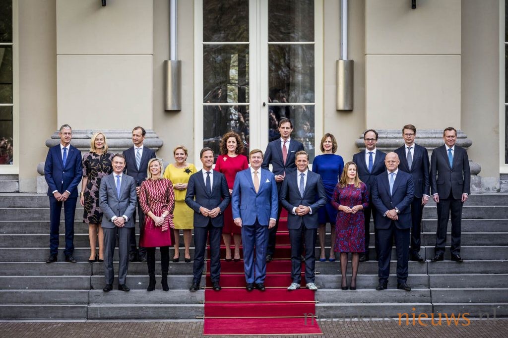 Anja en Nicolette van 2Impressu volgde gistermorgen de installatie van de leden van het kabinet Rutte III op de voet. En niet zonder trots want de voormalig burgemeester van gemeente Hof van Twente, Ank Bijleveld koos voor de beëdiging als nieuwe minister van Defensie voor een opvallende japon uit de collectie van het Markelose atelier. Rond het middaguur verscheen het kabinet Rutte III samen met koning Willem-Alexander op het het bordes van Paleis Noordeinde in Den Haag.