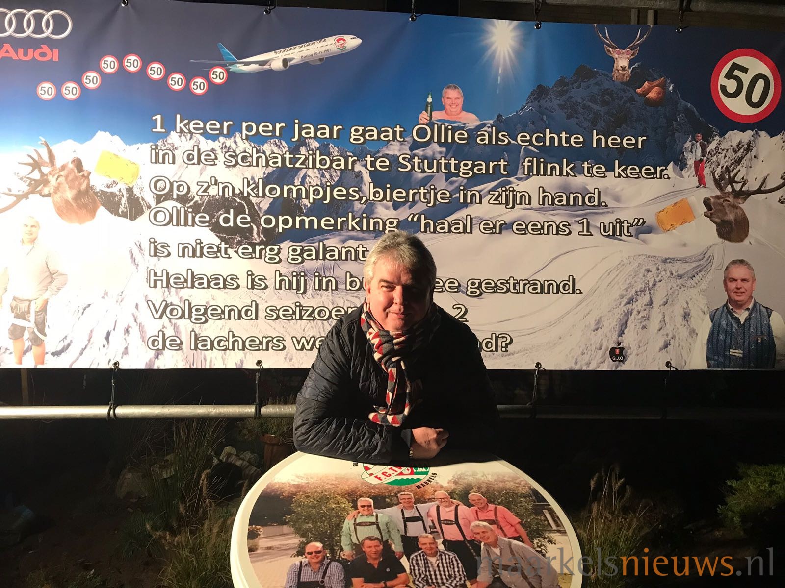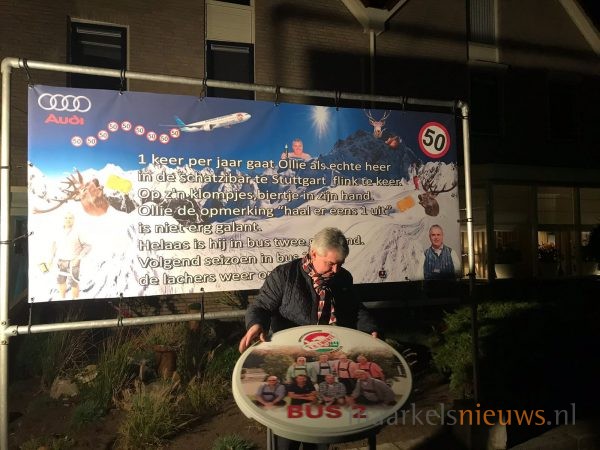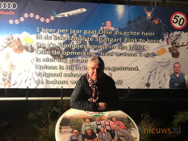 Hoewel Gert Jan Olthof zondag pas vijftig jaar wordt maar deze speciale verjaardag eerder viert hebben de Stuttgartgangers van Bus 2 van de Supportersvereniging FC Twente Markelo hem vanavond alvast verrast. Geheel volgens traditie werd de tuin van Gert Jan binnen de kortste tijd opgesierd met spandoeken en passende versierselen. Gert Jan; namens de Stuttgartgangers nogmaals van harte gefeliciteerd met je verjaardag en nog vele jaren.