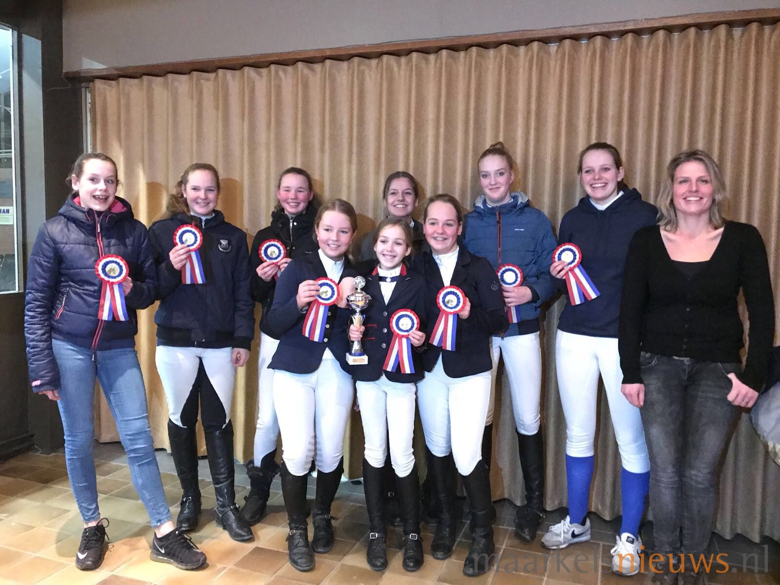 De ruiters van Ponyclub Markelo hebben zich gisteren tijdens de verenigingskampioenschappen bij Manege Hoffmeijer in Ambt-Delden succesvol in de prijzen weten te rijden. In drie categorieën kwamen de leden van de vereniging met hun pony aan de start. Zowel bij het springen en de dressuur individueel als ook een viertal lieten de combinaties zien wat zij in hun mars hadden. Een spannende race tussen de deelnemende verenigingen die uiteindelijk zou worden beslist door Ponyclub Achter’n Bos en Ponyclub Markelo. Het Markelose viertal had de hoogste score, de dressuurruiters behaalden een tweede plaats en ook de springruiters reden foutloos rond waardoor uiteindelijk als vereniging, een welverdiende tweede prijs in de wacht werd gesleept.