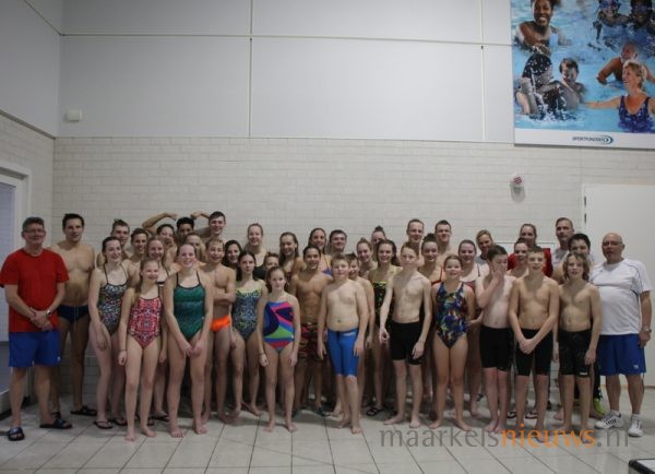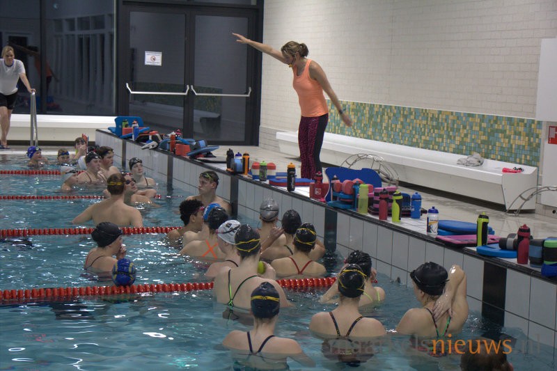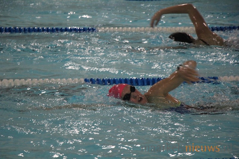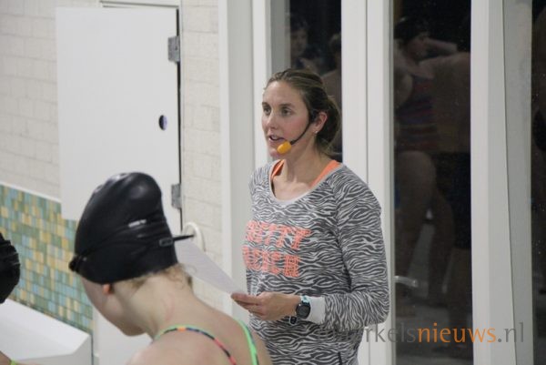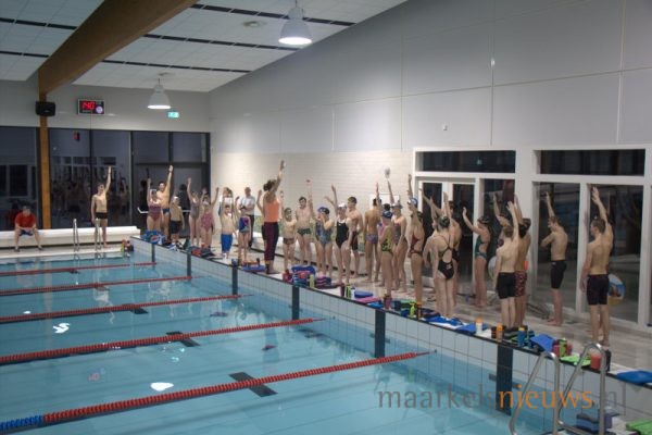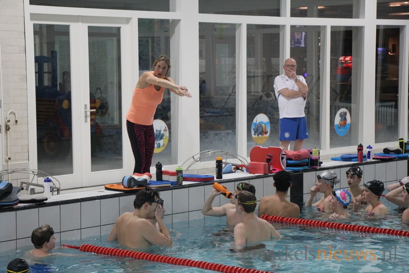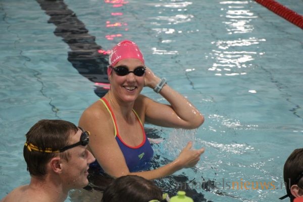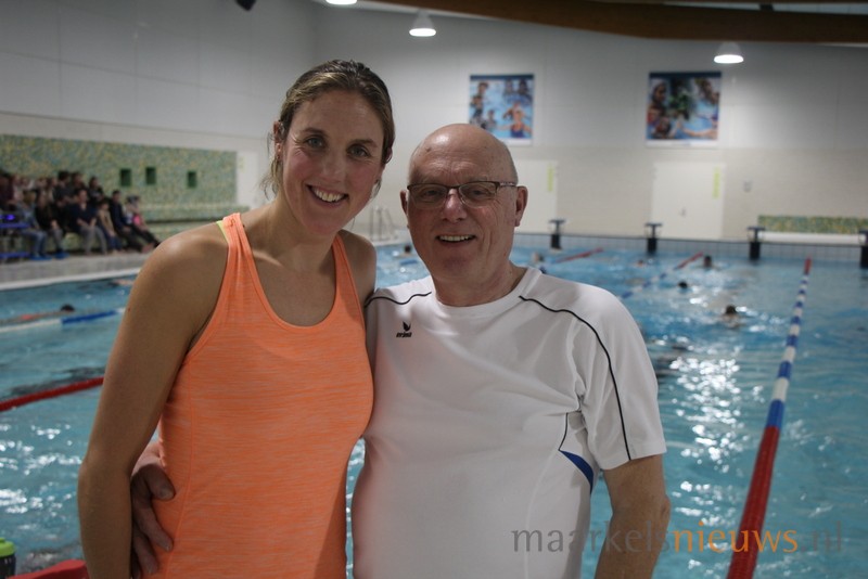 Olympisch kampioen Marleen Veldhuis heeft vanavond een zwemclinic gegeven in zwembad De Vijf Heuvels aan de A-selectie van ZPC De Hof. Het was tevens een gezellig weerzien met haar oud trainer Hennie Alink. Marleen die tegenwoordig in Australië woont en daar clinics geeft, heeft in de periode 2000 tot 2003 bij De Whee getraind in Goor waar Hennie Alink haar trainer was. Tegenwoordig is Hennie trainer bij ZPC De Hof. Veel leden van de zwemclub genoten zichtbaar vanaf de tribune van de leerzame zwemclinic die de Europees-, Wereld- en Olympisch kampioen in Markelo op een boeiende wijze wist neer te zetten voor de A-selectie. Uiteraard heeft Marleen ook zelf nog een frisse duik genomen in het Markelose zwembad en werd de voormalig internationaal topzwemster uitgedaagd door de selectie voor een wedstrijd.
