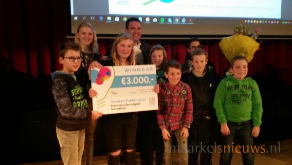 Groep 7 en 8 van OBS Stokkum heeft vanavond in het Parochiehuis in Delden de Publieksprijs van de Duurzaamheidsprijs 2017-2018 in de wacht weten te slepen. Aan deze prijs is een geldbedrag van 3.000 euro gekoppeld, hiermee willen ze een kas aan gaan schaffen. In december wisten ze bij de jury in de jongerencategorie al beslag te leggen op de tweede plek. In totaal waren er voor de Duurzaamheidsprijs 30 inzendingen ingestuurd, waarvan 7 uit Markelo. Gerard ter Hofte wist in december de juryprijs te winnen.