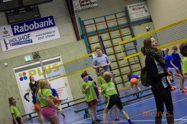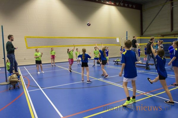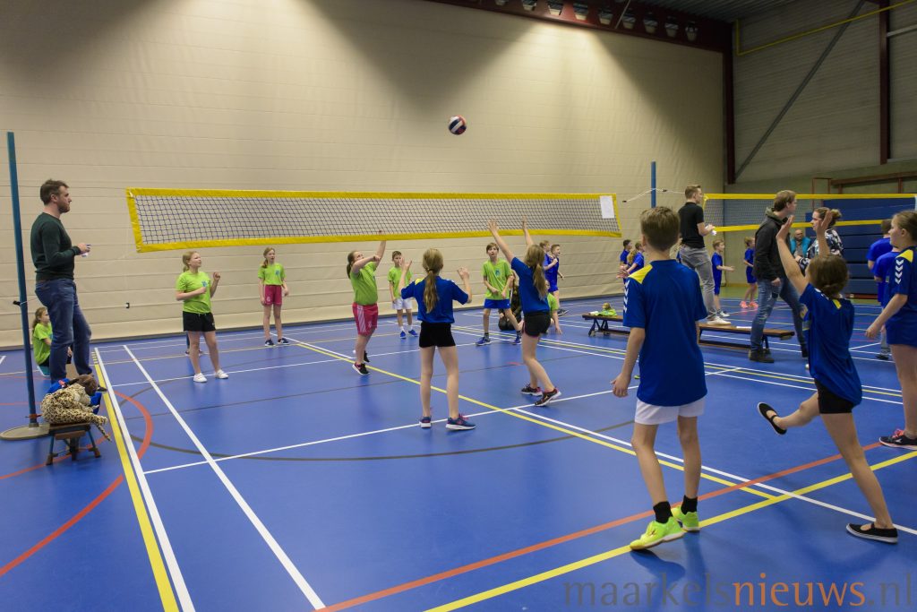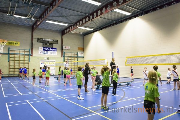 Vanmiddag stond het jaarlijks, terugkerende lijnbaltoernooi in Sporthal De Haverkamp op de agenda. Ook dit jaar streden de groepen 6, 7 en 8 van alle basisscholen uit Markelo om de eer. Het toernooi startte om 12.30 uur en eindigde om 14.30 uur. In drie zaaldelen werd door zo’n 200 leerlingen fanatiek maar sportief gespeeld. Na een aantal wedstrijden zag je de koppies al roder worden en werd duidelijk door iedereen geknokt voor de overwinning. “Maar zoals zo vaak; het meedoen is net zo belangrijk. We vinden eigenlijk als sportcommissie dan ook iedereen een winnaar”, geeft Aat Aanstoot aan. Het toernooi werd ook dit jaar weer door veel ouders en grootouders vanaf de tribunes op de voet gevolgd. Na twee uur strijden werden de prijzen onder de verschillende scholen verdeeld.
