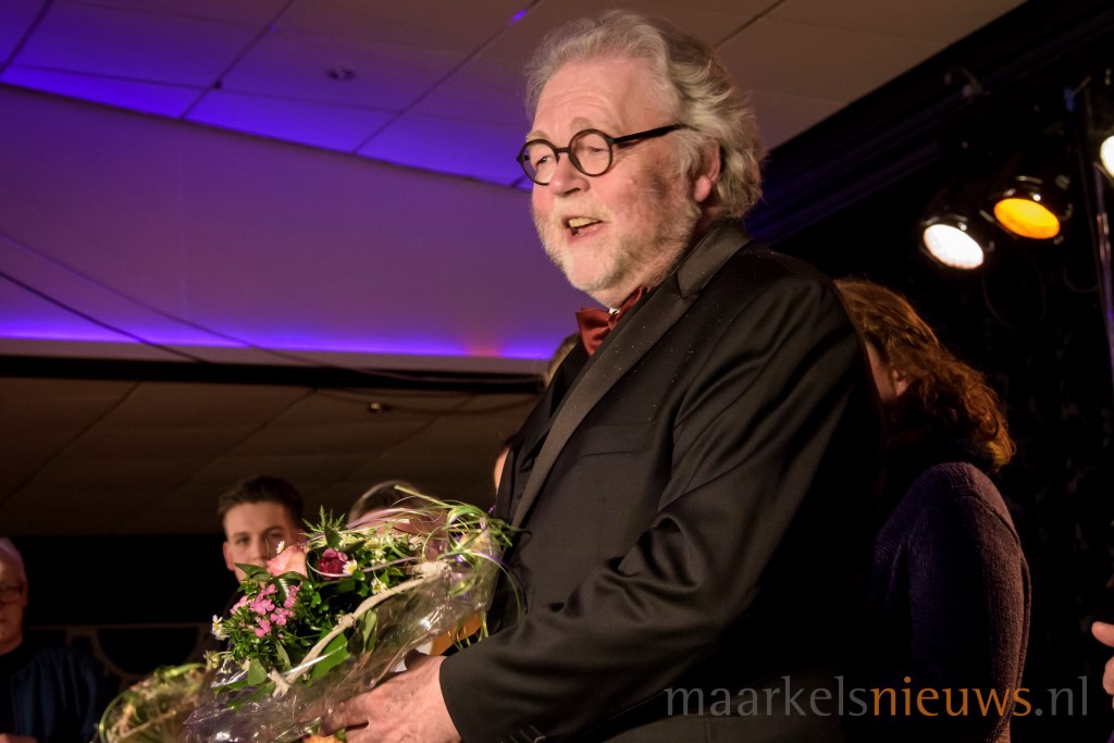 Na maar liefst 17 uitvoeringen als regisseur verbonden te zijn geweest aan Rederijkerskamer Bilderdijk neemt Leonard Beuger na dit seizoen afscheid van Bilderdijk. Gisteravond werd hij dan ook niet zonder reden uitgebreid in het voetlicht gezet na de succesvolle première van het toneelstuk ‘Wachten op Elsbeth‘. Piet Meiberg sprak hem toe, terwijl de zaal muisstil luisterde naar zijn lovende woorden aan het adres van Leonard Beuger. Sinds 1999 wist de regisseur te zorgen voor verrassende toneelstukken met veel kwaliteit, creativiteit en vakmanschap. Een enorme diversiteit aan toneelstukken werden door de spelers op de planken gezet onder zijn regie. Beuger voelde zich thuis bij Bilderdijk en gaf aan ook veel van de spelers te hebben geleerd en de rijke tradities die het dorp Markelo kent.