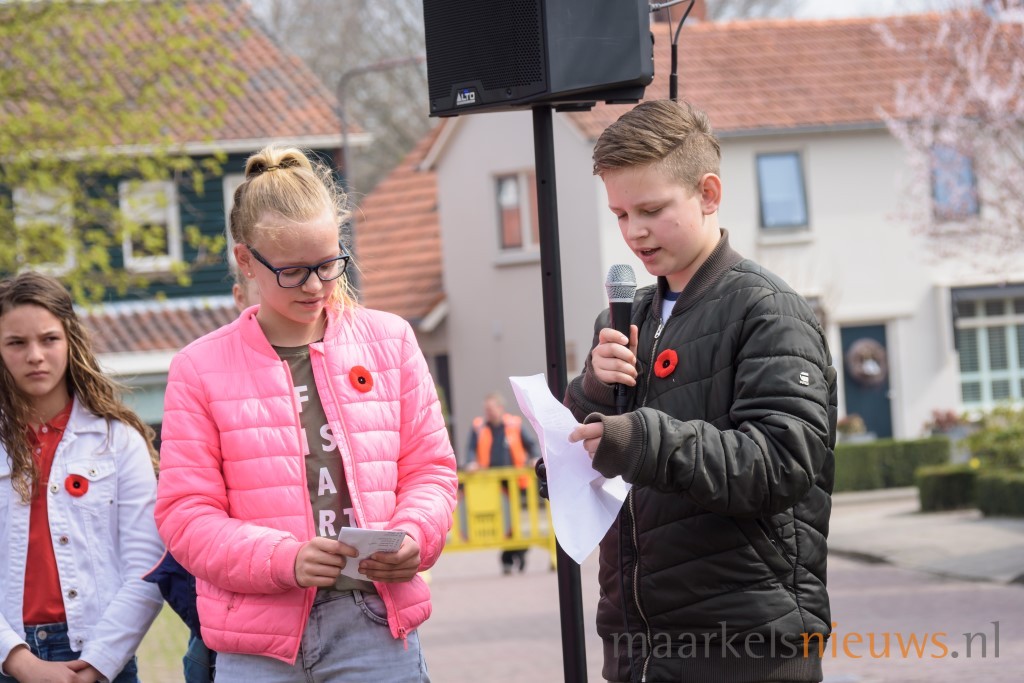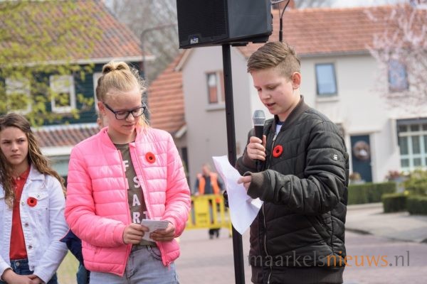 Bij het monument aan het Beaufortplein worden de leerlingen en toeschouwers welkom geheten door Benny Schreurs namens de werkgroep Adopteer een Monument die benadrukt dat het belangrijk is dat wij blijven herdenken. Wethouder Pieter van Zwanenburg legt de nadruk in zijn speech, tijdens het jaar van het verzet, op de Markelose verzetshelden en de rol die zij hebben betekend tijdens de Tweede Wereldoorlog. Hij benadrukt dat de verzetshelden die op verschillende manieren meededen aan het verzet in een ding hetzelfde waren. Ze hadden oog voor mensen in hun omgeving. Hij vraagt de leerlingen om stil te staan in hoeverre ze zelf zouden helpen als een ander hen dat vraagt. Ook als je daar veel moeite voor zou moeten doen of daar een offer voor zou moeten brengen.