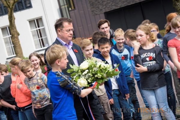 Nadat twee leerlingen van De Zwaluw de namen van de gevallenen hebben voorgelezen wordt de krans namens het gemeente bestuur bij het monument gelegd en volgt een minuut stilte. De leerlingen leggen aansluitend tulpen. De herdenking wordt op een respectvolle manier afgesloten met ‘Het Wilhelmus’.