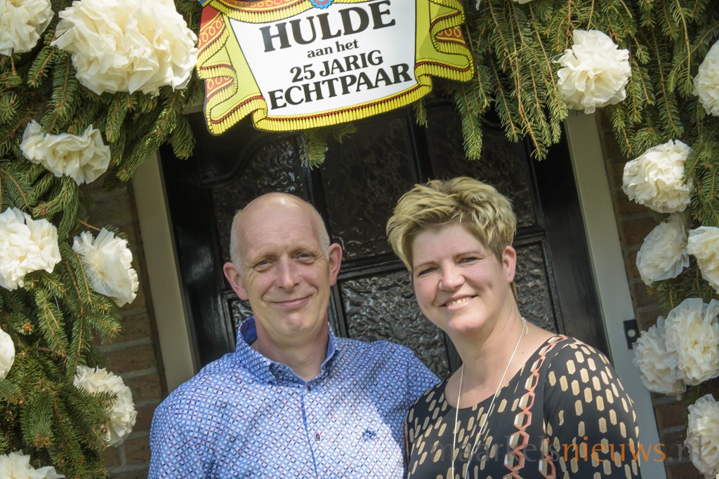 Op 15 april was het exact 25 jaar geleden dat Erik en Anita Zwiers met elkaar in het huwelijksbootje zijn gestapt. Vandaag vierde het zilveren bruidspaar deze feestelijke mijlpaal samen met familie, vrienden en de buurt bij Dieka van de Kruusweg. Het plaatsen van de boog volgens traditioneel gebruik zorgde al voor een klein feestje deze week maar vandaag wordt dat vast en zeker nog eens dunnetjes over gedaan. Erik en Anita; nogmaals van harte gefeliciteerd namens de familie, buurt en vrienden met jullie 25-jarig huwelijk!