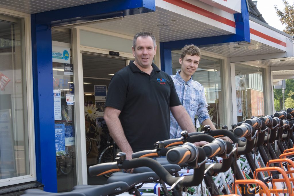 “Wel een bijzondere opdracht die we deze week snel moesten inplannen”, lacht Marcel Driezes van Profile Markelo. Vanmorgen werd door hem de laatste hand gelegd aan maar liefst 14 fietsen die vanaf 17 mei door de gelukkige winnaars kunnen worden opgehaald. De fietsen maken deel uit van de straatprijs van de Postcodeloterij die tijdens de trekking van maart in de Haverstraat in Markelo is gevallen. De Postcode Loterij fiets is een bijzonder, robuust, comfortabel en bovenal veilige fiets die door Batavus is gemaakt. Een uniek exemplaar in frisse kleuren en door zijn paperclipvormige frame een hippe stadsfiets.