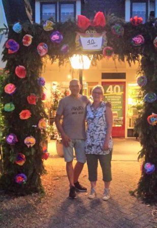 Gisteravond hebben de buren van de Noordachtereschweg een boog geplaatst met fleurige rozen bij de ingang van De Bloemerie. Deze actie die natuurlijk alles te maken had met het 40-jarig jubileum van De Bloemerie werd dankbaar aanvaard en enthousiast goedgekeurd door Getty en Janet. Met een hapje en een drankje werd gezamenlijk geproost op deze bijzondere mijlpaal. Familie Eggink; namens de buurt nogmaals van harte gefeliciteerd met het 40-jarig jubileum!