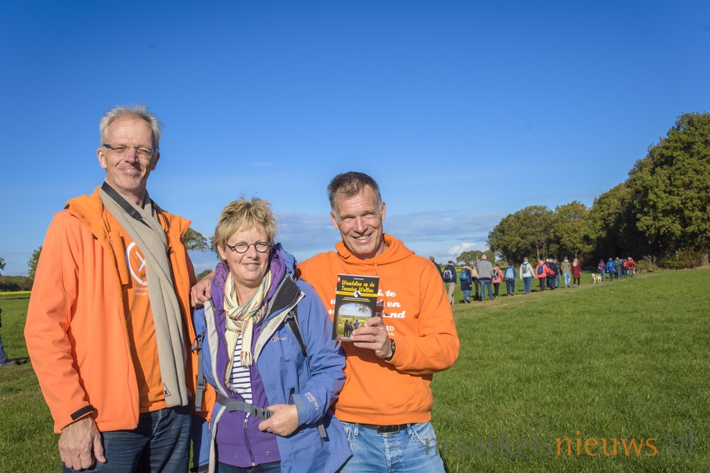 Na het officiële gedeelte werd door de aanwezigen gestart aan een deel van een van de bergtochten uit de wandelgids ‘de Markelose Berg’. Het herfstzonnetje maakte het tot ideale omstandigheden om te genieten van ons mooie Markelo. De wandelgids is vanaf vandaag voor € 14,95 te koop bij onder meer het Infocentrum Markelo als ook Boek- en Kantoorvakhandel Prins in Markelo maar ook op de website van Uitgeverij Gegarandeerd Onregelmatig.