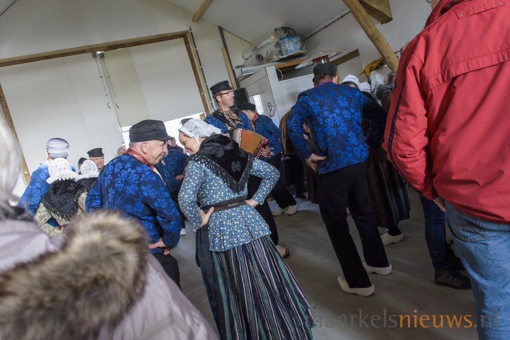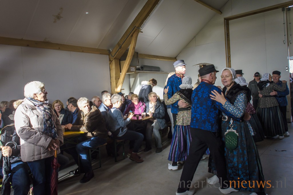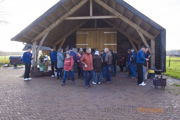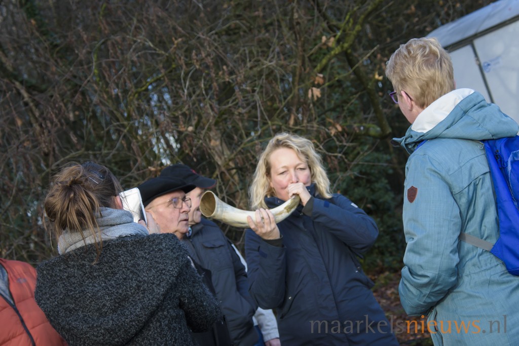 De ruim 900 deelnemers van de Midwinterwandeling troffen het vandaag met de weersomstandigheden. Voor de tijd van het jaar was het alles behalve koud en bleef het tijdens de wandeling droog. De regen van gisteren en zelfs vanmorgen nog, had wel voor wat drassige delen in de route gezorgd maar dat was dan ook het enige wat er op te merken viel volgens een aantal deelnemers. De organiserende Folkloristische Vereeniging had dit jaar het start- en finishpunt bij Dieka van de Kruusweg ingericht. Onderweg lieten de Markelose Ossenhoornblazers het specifieke geluid uit de hoorns horen en vertelden enthousiast over de eeuwenoude traditie die de Markeloërs 30 jaar geleden weer hebben opgepakt. Ook de Folkloristische Vereeniging verzorgde op een sfeervolle locatie onderweg een demonstratie en lieten een aantal dansen zien. Ook de kindergroep van de vereniging trad hier op en werden de aloude gebruiken touwdraaien en bezembinden gedemonstreerd. Amusementsorkest de Grösmeijers zorgde voor een warm en gezellige sfeer na de midwinterwandeling in de zaal bij Dieka. Onder het genot van warme drankjes, soep en worst werd er door menigeen nog gezellig nagezeten.