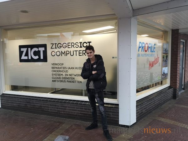 Met uitzicht op het Kaasplein werkte Jamie Ziggers de afgelopen week aan de inrichting van zijn nieuwe bedrijf. Ziggers ICT heeft zijn onderkomen gevonden in een deel van Profile Markelo aan de Taets van Amerongenstraat in Markelo. “Jamie was op zoek naar een ruimte voor zijn bedrijf. Op termijn willen we gaan samenwerken en juist daarom is het fijn dat we met elkaar deze oplossing hebben gevonden. Jamie gebruikt ruim 35 m2 van onze showroom en kan daar zijn werkzaamheden uitvoeren”, vertelt Marcel Driezes. Jamie is een allrounder op het gebied van ICT en naast het uitvoeren van reparaties aan computers en laptops geeft hij ook graag advies op het gebied van beveiliging van uw netwerk of helpt bij het installeren van computerprogramma’s. Momenteel wordt de laatste hand gelegd aan de uitstraling van Ziggers ICT. Vanaf dinsdag 8 januari opent Ziggers ICT officieel zijn deuren en hanteert het bedrijf dezelfde openingstijden als Profile Markelo.