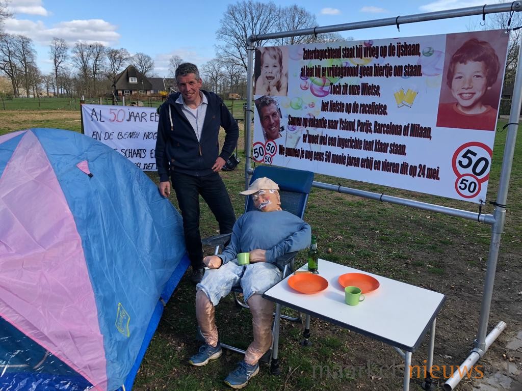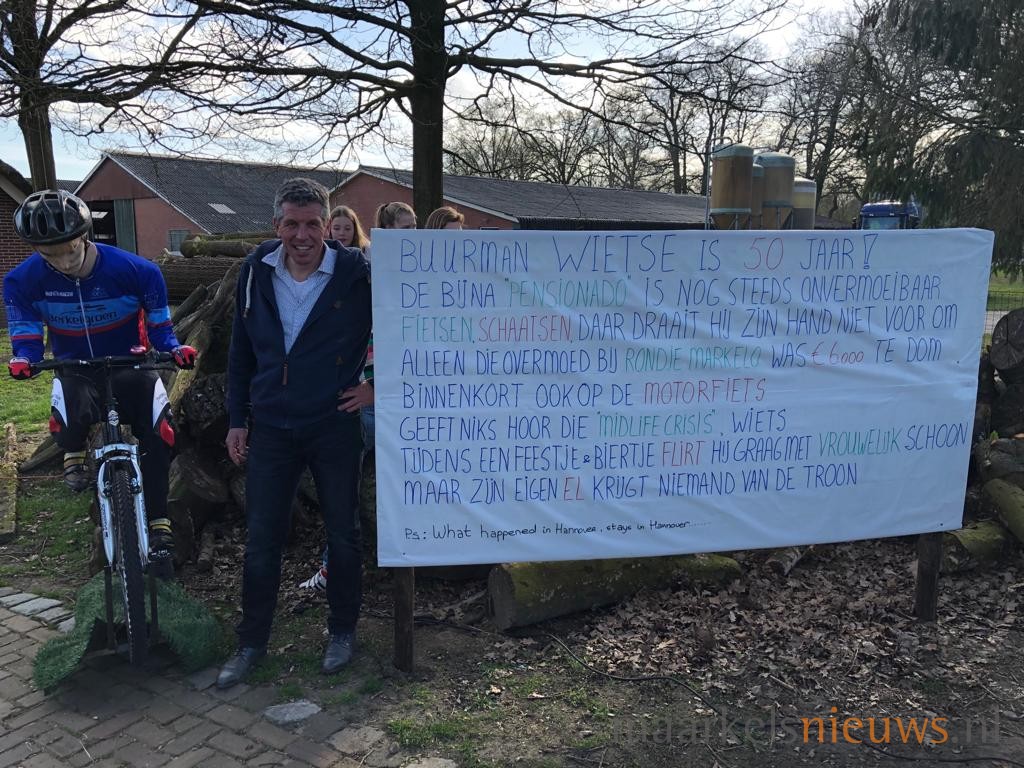 Wietse Wes is vandaag 50 jaar geworden. Gisteren rond de klok van 16.00 uur kwamen familie, vrienden en buren de nodige spandoeken en Abraham’s bij hem in de tuin plaatsen. Het was volgens ingewijden zeer gezellig! Het echte feest zal in mei worden gevierd, wanneer hij samen met zijn vrouw Ellen 12,5 jaar getrouwd is. Wietse; namens de buurt nogmaals van harte gefeliciteerd met je 50e verjaardag.