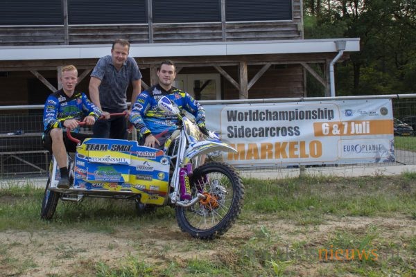 Terwijl we in de starttoren van de Markelose Motorclub op de Herikerberg in gesprek zijn met voorzitter Eelco Laarman en penningmeester Herbert Hoevink over het komende Wereldkampioenschap Zijspancross schuift ook Sven Smit aan. Het lopen op krukken en de blik op zijn gezicht verraadt het slechte nieuws al. “Vanmiddag hebben we definitief besloten om niet te starten in Markelo. Afgelopen weekend tijdens de crosswedstrijd in Oss ben ik zelf gecrasht”, vertelt Sven terwijl hij naar zijn voet wijst. Waarschijnlijk heeft Sven tijdens die wedstrijd zijn enkelbanden gescheurd en was het op dat moment over. In overleg met zijn fysiotherapeut heeft Sven vandaag het besluit moeten nemen om af te zien van deelname aan de wedstrijd in Markelo. “Natuurlijk baal ik er van dat ik hier nu niet kan rijden in mijn eigen woonplaats op een circuit dat zo afwisselend is met zijn harde en zachte ondergrond en veel springbulten”. Herbert vult aan: “Niet alleen voor rijders maar ook voor publiek is de baan erg afwisselend. Op het terrein rondom de starttoren is de beleving heel anders dan achterop het terrein waar je in de nabijheid van de Wolsinkbult de rijders voor een heel groot deel in het bos kunt volgen”.