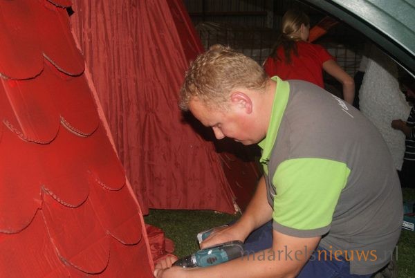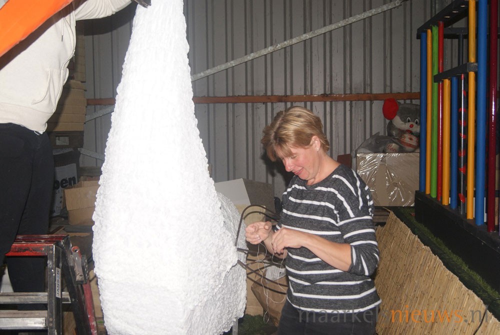 In Markelo worden de laatste tijd steeds meer ooievaars gesignaleerd. Afgelopen week nog streek een grote kolonie neer in de buurtschap Herike-Elsen. Maar ook in de Dijkerhoek is het een komen en gaan van deze dieren. Met name op de wagenbouwlocatie aan de Larenseweg 1 worden de laatste weken reuzevarianten van de stork gezien. Grote kans dat het te maken heeft met het onderwerp van de wagen van deze buurt. De Dijkerhoek doet dit jaar namelijk mee met ‘Bakerpraatjes’. Vroeger had elk dorp bakers, eigenlijk een soort van kraamverzorgster, die de vroedvrouwen begeleide bij de bevallingen. De praatjes die deze ongeschoolde vrouwen verkondigden, waren vaak onjuiste beweringen die met de zwangerschap en bevalling te maken hadden. Meestal gingen deze beweringen over het geslacht van het kind, maar ook ‘Kinderen worden door de ooievaar gebracht’ is een bakerpraatje. Voordat de wagenbouwers dit jaar konden beginnen, moest eerst de stuurinrichting van de wagen worden gerepareerd. Dat betekende dat de eerste bouwers begin juni al bezig waren, om de gehuurde wagen van de PJGO, te herstellen. Van bouwstress is geen sprake bij de Dijkerhoek, want op piekavonden zijn ruim 20 bouwers aanwezig, waarbij heel veel jeugd de handen uit de mouwen steekt en eigenlijk alles volgens plan verloopt. Met name de prachtige loopgroep voor de wagen zal volgende week zondag de buurt veel applaus doen opleveren. Op de vraag of er met alle ooievaars in de buurt binnenkort een babyboom in de Dijkerhoek valt te verwachten, doen de bewoners het stilzwijgen. Toch wordt de eerste baby in de buurt over enkele maanden al verwacht… en toeval of niet, zal dit zijn, aan de overkant van de bouwlocatie bij Mark en Leonie Stokreef…