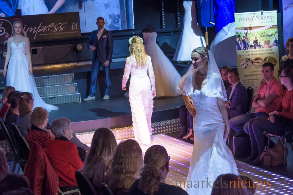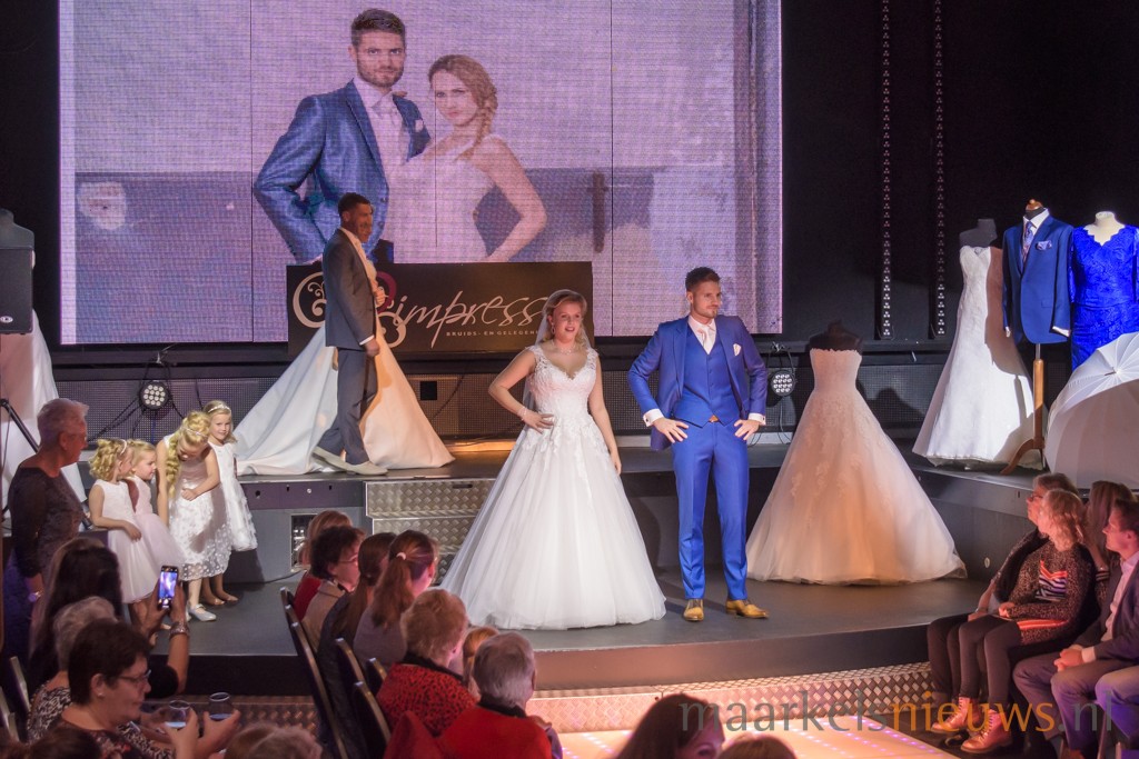 De dag van je leven waarop je het ja-woord gaat geven verdient een goede voorbereiding. Nadenken over bijvoorbeeld de feestlocatie, ringen, bloemen, bruidstaart, bruidskapsels, muziek, fotografie maar natuurlijk ook de bruidsjapon en het trouwpak van de bruidegom. Vanmiddag bij De Kroon was er volop de mogelijkheid om geïnspireerd te raken tijdens de 3e editie van de Bruidsbeurs die 2Impressu jaarlijks organiseert bij De Kroon. In een geweldige ambiance met gebruik makend van licht en geluid werden tijdens twee bruidshows een deel van de nieuwste collectie van het bruidsatelier op een enthousiaste wijze geshowd. Niet alleen bruidsjaponnen ook een aantal maatkostuums voor de man, japonnen voor de bruidsmoeders en bruidsmeisjes kwamen voorbij op de catwalk.
