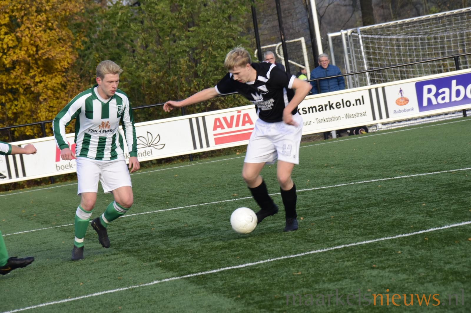 Sportclub Markelo had vanmiddag in de Hofderby geen kind aan Hector. Vanaf minuut één was de thuisploeg de bovenliggende partij en drukte dat al snel uit in doelpunten. Na tien minuten spelen was het Mickey Slotman die de 1-0 binnenschoot, vijf minuten later kopte René Kuijpers de bal prachtig over doelman Kolbe heen en maakte zo de 2-0. Hector kwam niet in het spel voor en na een half uur spelen was Steven Bloemen het eindstation door na een ‘aanval uit het boekje’ de 3-0 binnen te schieten. Toch deden de bezoekers uit het niets iets terug. Een vrije trap van de Hectorianen verdween iet wat gelukkig achter doelman Olminkhof. Dit bracht de zwart-witten niet van de wijs en voor rust wist Roland Stege zelfs nog de 4-1 op het score bord te zetten, op aangeven van Kars Zwiers. Na rust was het wederom één richtingsverkeer richting het doel van Hector. Roland Stege schoot op prachtige wijze van 20 meter de 5-1 binnen en niet veel later was het Mickey Slotman die de de 6-1 aantekende. Het slotakkoord was voor debutant Miquel Schippers, hij schoot in blessuretijd de 7-1 binnen. Een eenvoudige overwinning voor de ploeg van Rutger Kats, dat volgende week op bezoek gaat bij FC Eibergen.