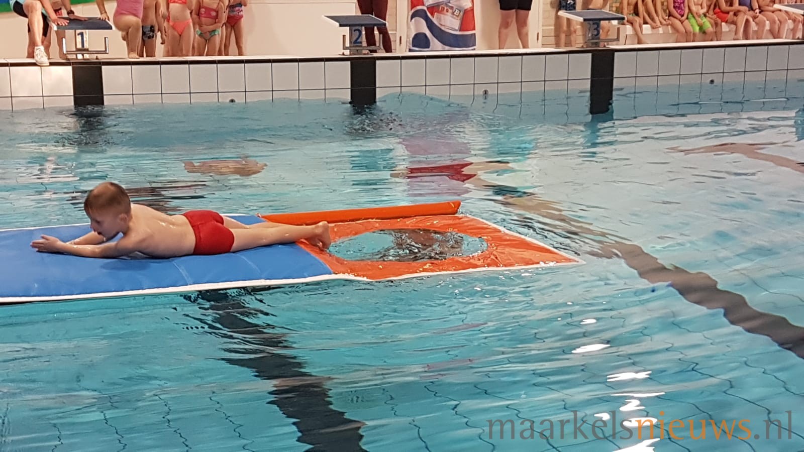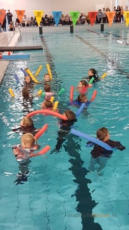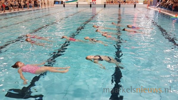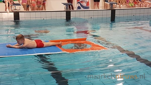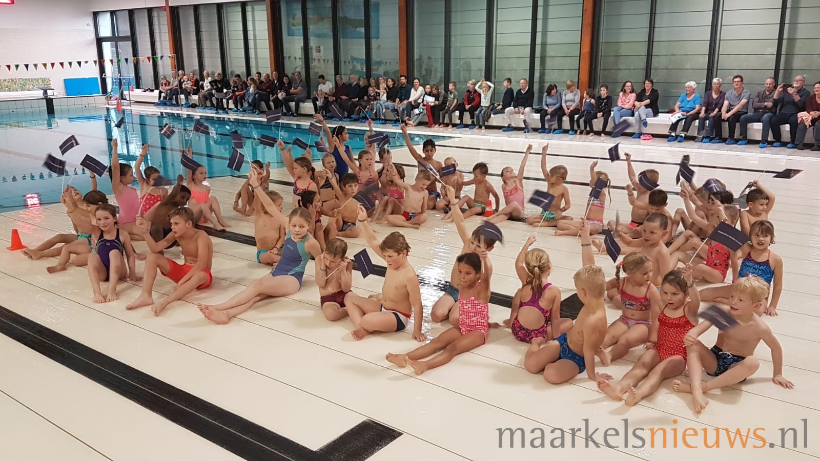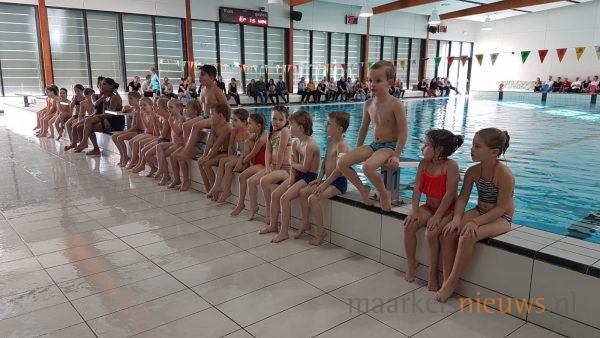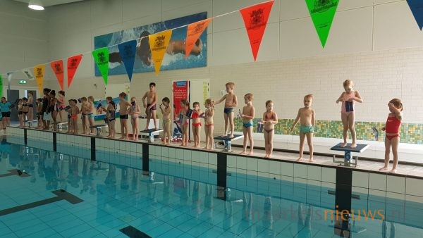 Het regende zaterdagmiddag weer volop A, B en C zwemdiploma’s in Zwembad ‘De Vijf Heuvels’. In het Markelose zwembad werd zaterdag door maar liefst 74 kinderen afgezwommen voor een van de zwemdiploma’s uit het Zwem-ABC. Onder toeziend oog van veel ouders lieten de kinderen hun zwemvaardigheid op de verschillende onderdelen zien. Bij het afzwemmen wordt gekeken naar de beheersing van de techniek, de conditie en de vaardigheid. Van de 74 kinderen zwommen er 26 af voor zwemdiploma A, 35 voor zwemdiploma B en 13 voor zwemdiploma C.