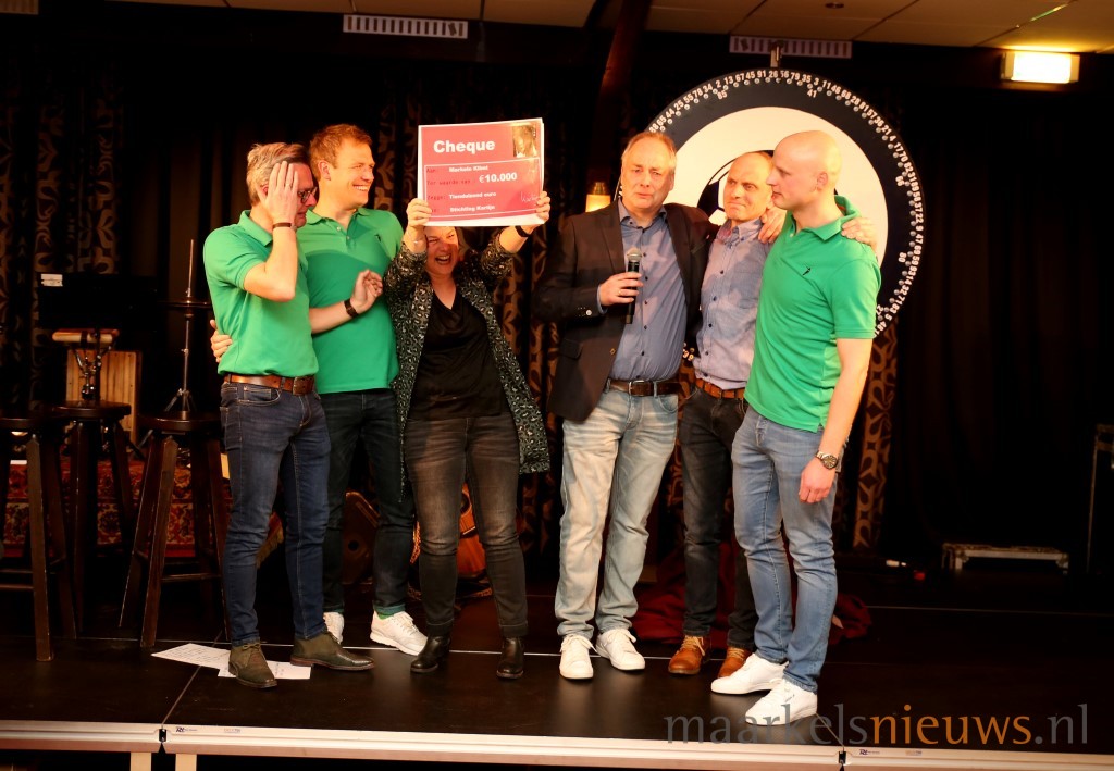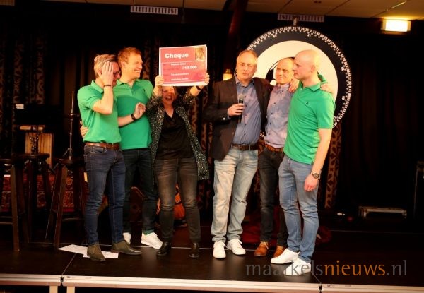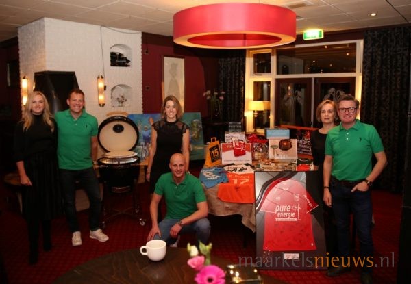 De benefietavond die Markelo Klimt gisteravond organiseerde bij De Haverkamp heeft aan het eind van de avond een bedrag van 29.000 euro opgeleverd. Het programma vol met muziek en de veiling van bijzondere items, werd gepresenteerd door Hans van Middendorp. Alle mensen die op enige wijze een bijdrage leverden aan de avond hebben dit geheel op vrijwillige basis gedaan. Zo was Bert Pinkert een van de kelners van het team van De Haverkamp die vrijwillig aan het werk was. Bert vertelde op het podium over zijn ervaringen die hij heeft opgedaan bij het helpen bij de jaarlijkse actie rondom de Alpe d’Huez. Een bijzonder en emotioneel moment ontstond, toen Gert Paarhuis, de man van Karlijn en haar zus Janin aan het woord waren en een bedrag van 10.000 doneerde aan deze benefietavond. “Het bedrag van 10.000 euro is afkomstig van de stichting Karlijn en komt hiermee nu ook echt goed terecht”, aldus Gert en Janin. De vraag aan Edwin, Niek en Jeroen of zij bovenop de Alpe d’Huez een kaarsje voor Karlijn willen opsteken op 4 juni gaan de mannen uiteraard inwilligen. Het moment leverde een emotioneel moment op waarbij de aanwezigen in de zaal muisstil waren. Niek: “We zijn overdonderd door het enorme bedrag dat we gisteren met deze benefietavond met elkaar in Markelo bijeen hebben weten te brengen. Ook de donaties die we via de site van Markelo Klimt binnen krijgen zijn meer dan hartverwarmend. Het steuntje in de rug om ons te helpen om de Alpe d’Huez op te fietsen is meer dan een steuntje geworden!”.