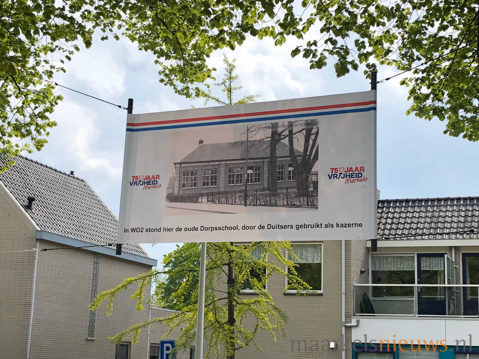 Deze zonnige dag zou, als het aan de Stichting Herdenken en Vieren Vrijheid Markelo had gelegen een heel ander verloop hebben dan nu het geval is. Door de maatregelen met betrekking tot de aanpak van het coronavirus is het niet mogelijk om evenementen te organiseren. Vandaag was het de bedoeling dat de vrijheid in Markelo groots werd gevierd met meerdere activiteiten op en rond het Kaasplein in Markelo. Deze festiviteiten worden definitief verplaatst naar 2021. Om toch aandacht te geven aan de 75 jaar Vrijheid in Markelo heeft de organisatie een aantal posters en spandoeken opgehangen in Markelo.