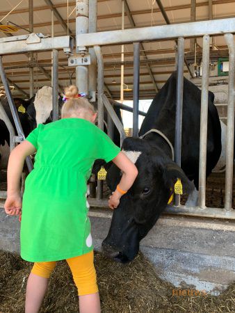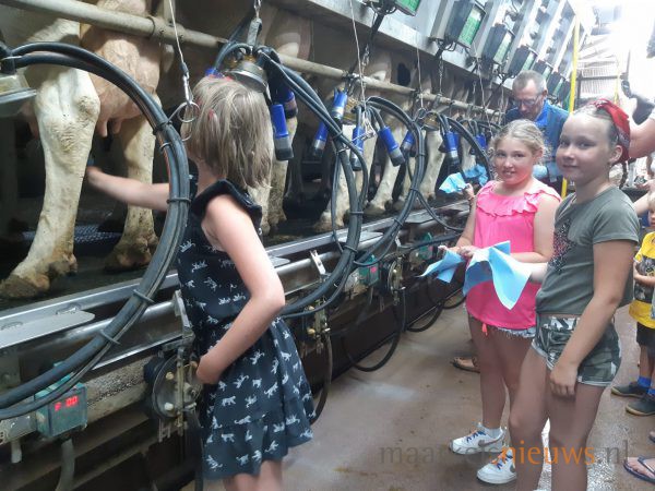 Een bezoek aan Melkveebedrijf Udink is een van de nieuwe activiteiten uit het animatieprogramma van Camping de Poppe. Het melkveebedrijf verzorgt rondleidingen op haar bedrijf voor kinderen en ouders die op de camping verblijven. Tijdens het bezoekje aan de boerderij kunnen groepen meekijken in de melkput, helpen met kalfjes voeren, kalfjes aaien en zelf boter maken. Zo gingen de kinderen vanmiddag enthousiast aan de slag met opdrachtjes op het melkveebedrijf van de familie Udink aan de Brummelaarsweg in Markelo. “We vinden het niet alleen leuk om te vertellen over ons werk op de boerderij maar gunnen de mensen ook graag een kijkje achter de schermen op ons bedrijf. Men heeft vaak geen idee hoe wij op ons bedrijf werken en omgaan met ons vee. De passie voor ons vak kunnen we op deze manier op geen betere manier overbrengen”, vertelt Alina Udink. Na afloop van het boerderij bezoek was er voldoende tijd om met elkaar na te kletsen over de boerderijervaring onder het genot van een glas ranja of melk en een stukje kaas. Met een welverdiend boerderij diploma en een bakje zelf gemaakte boter, verlieten de jonge campinggasten en hun ouders de boerderij.