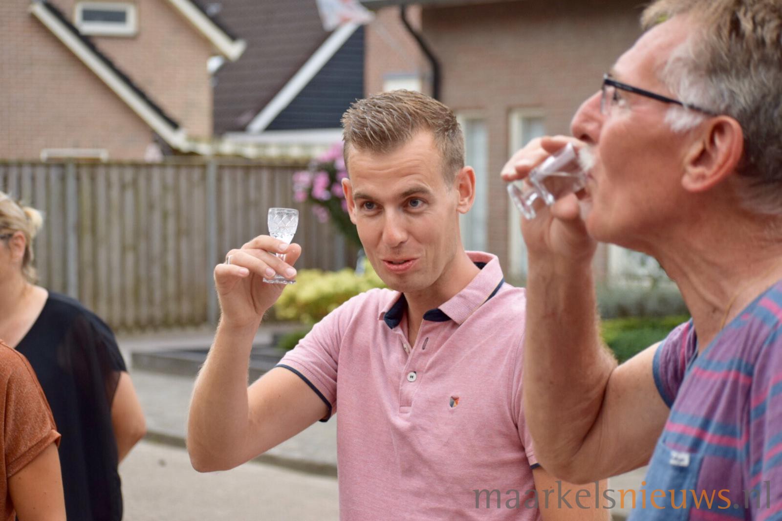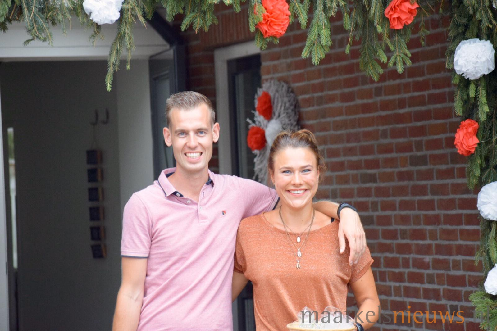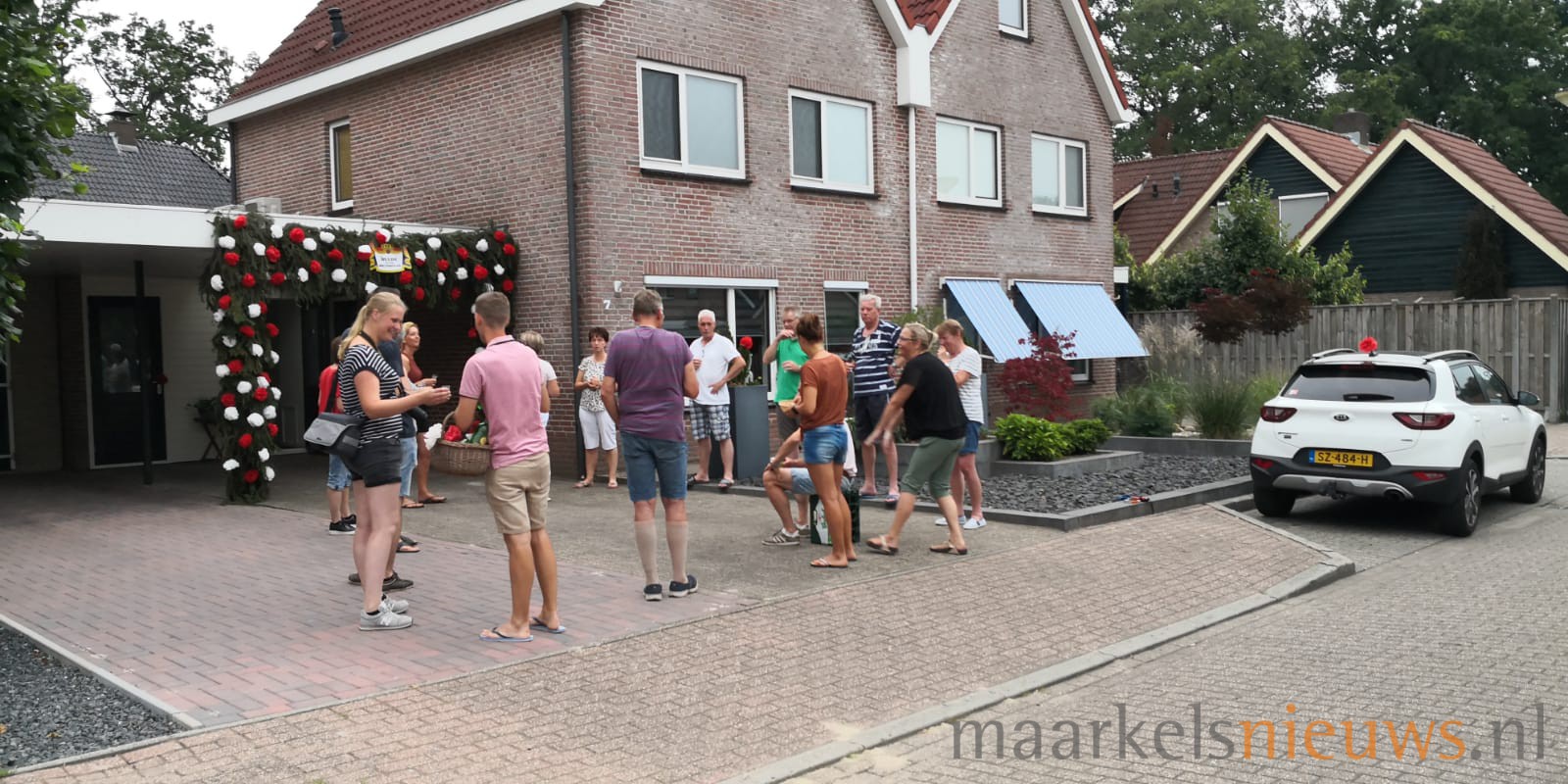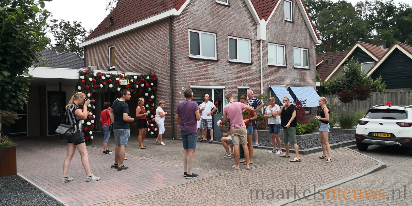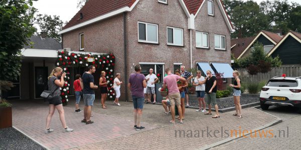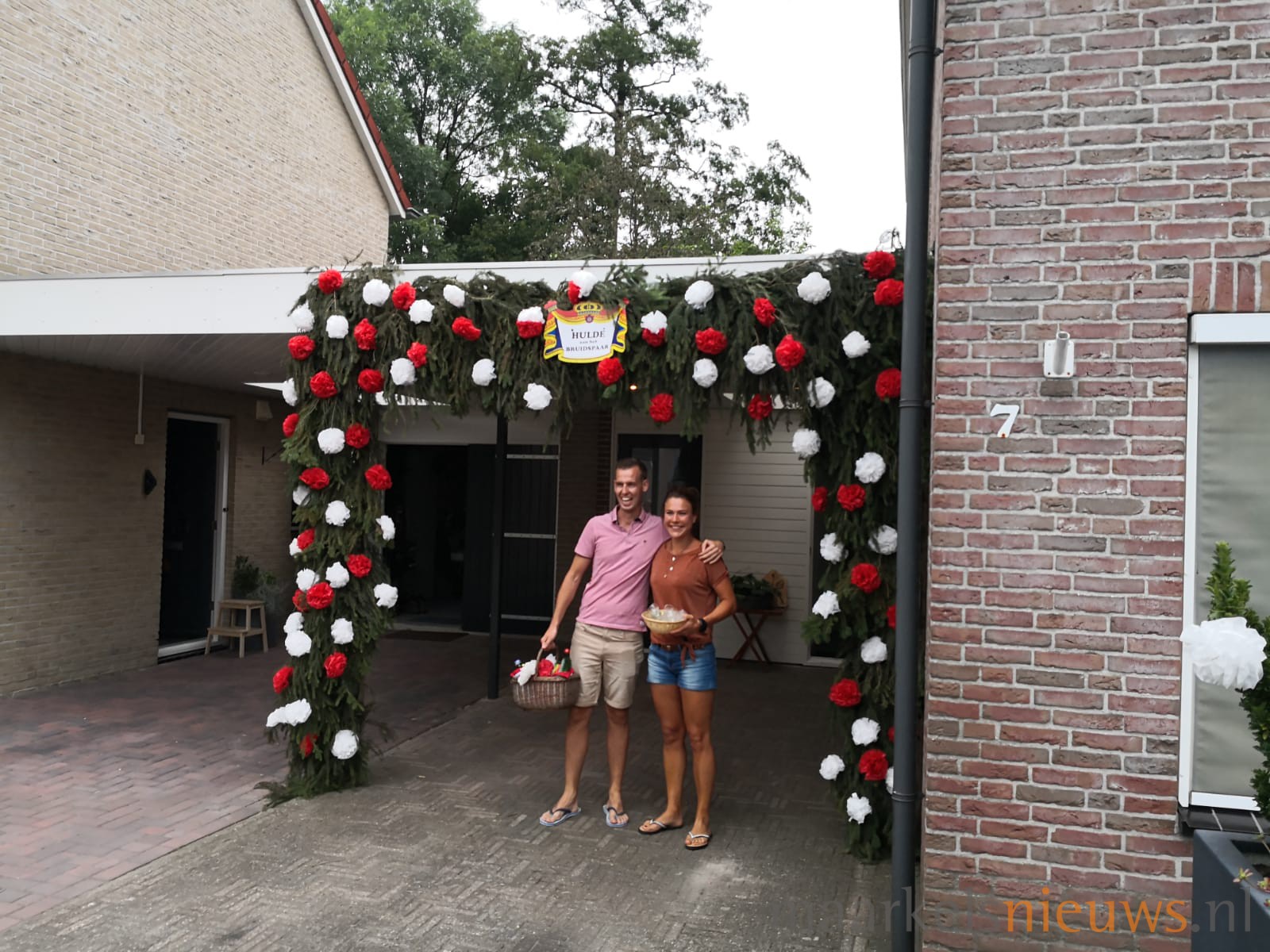 Frank Mulhof en Lisanne Jimmink volgen de weersvoorspellingen voor deze week waarschijnlijk op de voet. Met name de voorspellingen voor aanstaande vrijdag houdt het paar vast en zeker nauwlettend in de gaten. Vrijdag is voor hen de ‘grote’ dag en stapt het stel in het huwelijksbootje. Voor de buurt aan de Haverstraat meer dan genoeg reden om alvast een prachtige boog te plaatsen. Met een borrel en een flinke portie gezelligheid werd de boog aansluitend ‘nat gemaakt’, waarmee de buurt een oude traditie in trouw in stand houdt. Frank en Lisanne; namens de buurt alvast heel veel geluk toegewenst en geniet van jullie dag!