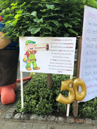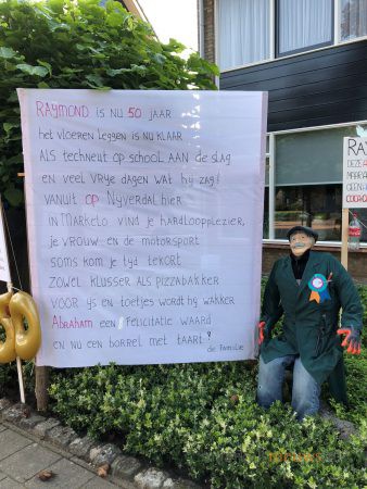 Afgelopen maandag was de dag dat Raymond Scholten Abraham zag.. figuurlijk, maar ook letterlijk door twee meters hoge poppen. Dit heugelijke feit was aanleiding voor velen, om hem eens goed in het zonnetje te zetten. Uit alle spandoeken en teksten werd wel duidelijk dat Raymond altijd klaar staat om iemand te helpen en met twee rechterhanden veel werk kan verzetten…Via deze weg willen wij Raymond als familie, buurt, collega’s en de motorclub nogmaals van harte feliciteren.