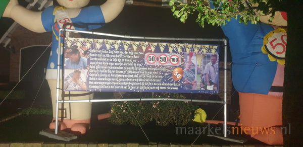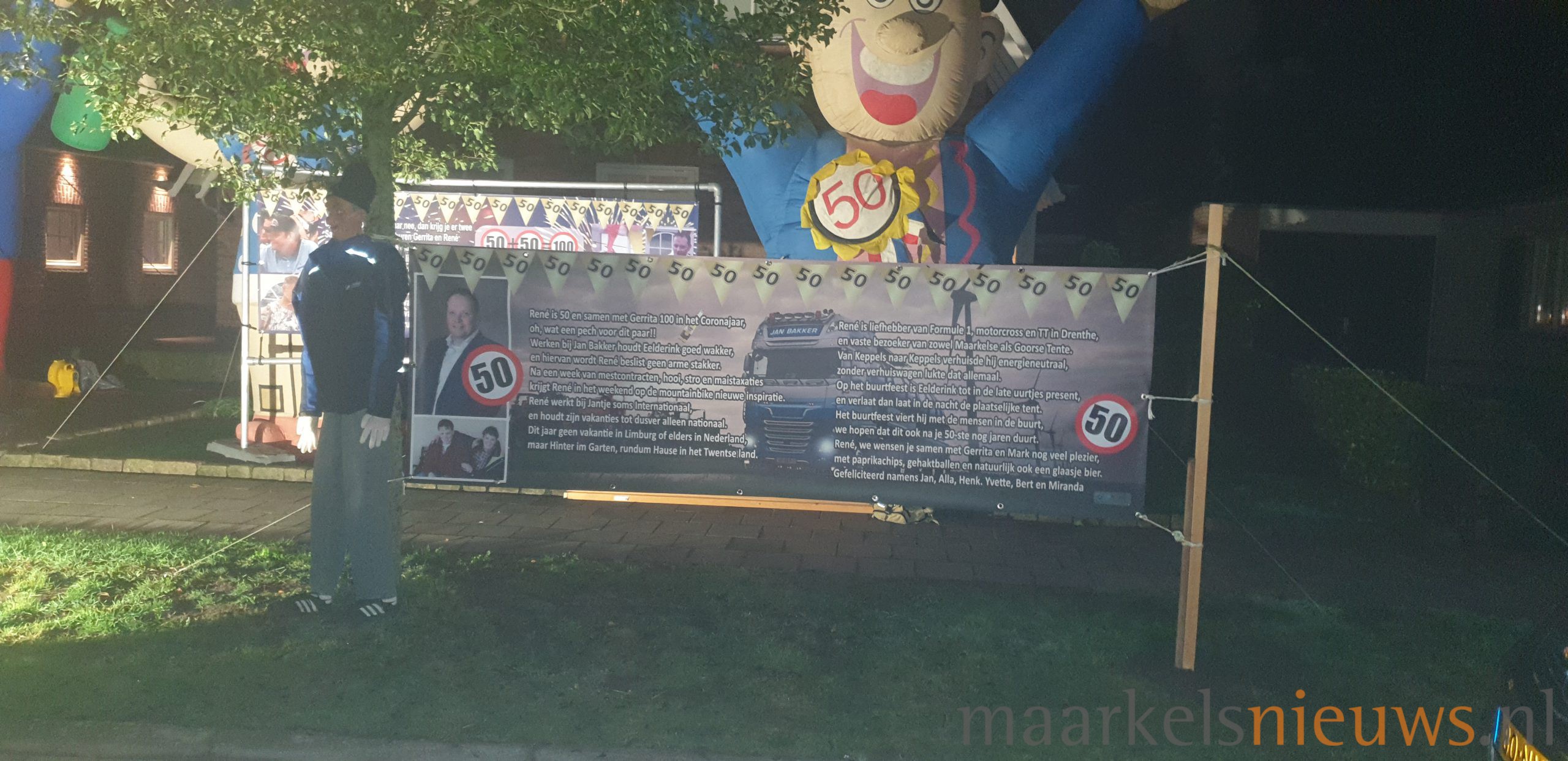 Vandaag is René Eelderink 50 jaar geworden. Gerrita werd 27 maart 50 jaar maar dat kon niet worden gevierd in verband met corona. Het was daarom de bedoeling dat dit gezamenlijk werd gevierd op 3 oktober maar ook hier kan een streep door worden gezet vanwege de aangescherpte maatregelen rondom het coronavirus. Het traditionele plaatsen van Abraham’s, Sarah en een aantal spandoeken ging wel door en daarom kwamen gisteravond familie, vrienden en de buren naar Keppels 13 om ze in het zonnetje te zetten. De teksten op de spandoeken spreken voor zich. René en Gerrita; namens alle aanwezigen nogmaals van harte gefeliciteerd met dit heugelijke feit!