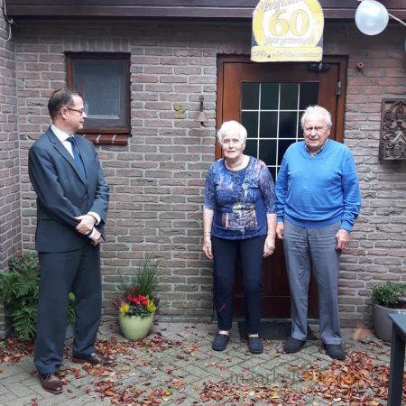 Vandaag zijn Gerrit en Annie Zwiers (van de Bôa) 60 jaar getrouwd. Wethouder Pieter van Zwanenburg bracht hen persoonlijk een bezoek aan de Ovinksweg 2 om hen, namens de gemeente Hof van Twente te feliciteren. Dit diamanten huwelijk is gisteren samen met kinderen, klein- en achterkleinkinderen en naaste familie en vrienden in kleine kring bij Dieka van de Kruusweg gevierd. Helaas konden hier, in verband met de maatregelen rondom corona, de buren en verdere familie niet bij aanwezig zijn. Ook het traditionele boog plaatsen door de buren kon hierdoor geen doorgang vinden en daarom hebben de kinderen dit op een alternatieve manier ingevuld. Namens de kinderen, klein- en achterkleinkinderen nogmaals van harte gefeliciteerd met dit heugelijke feit en op naar de 65 jaar in goede gezondheid!