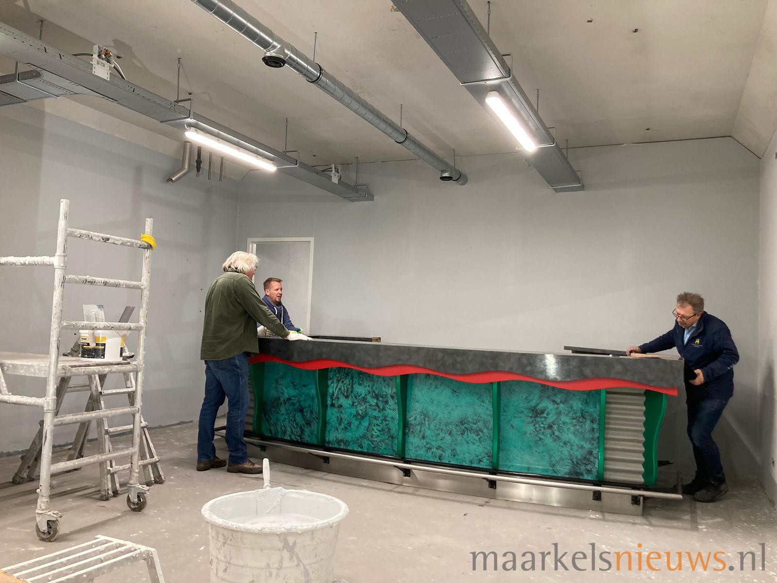 Een aantal weken geleden is Personeelsdiensten Markelo gestart met de verbouw van een bedrijfsruimte in de Kaasfabriek Markelo. De contouren van de kantoren, opslag- en de vergaderruimten is al goed zichtbaar. Een grote wens van de mannen achter Personeelsdiensten Markelo was toch wel om een mooie bar op de kop te kunnen tikken en deze een prominente plek te gunnen in de vergaderruimte. De Kroon heeft nog niet zo lang geleden, na een interne verbouwing afscheid genomen van de bar die jarenlang dienst heeft gedaan in de grote zaal van de horecagelegenheid. “Dat kwam natuurlijk bijzonder goed uit! Wij vinden het geweldig om juist déze bar in ons pand te hebben. De bar is voor ons geen onbekende, we hebben er regelmatig in de Bill’s Bar periode, een biertje aan staan drinken en hopen dat op vrijdagmiddag met de jongens in de toekomst weer op te kunnen pakken”, vertelt Johann Michorius enthousiast. Personeelsdiensten Markelo verwacht in de loop van februari de verbouwing van het pand gerealiseerd te hebben.