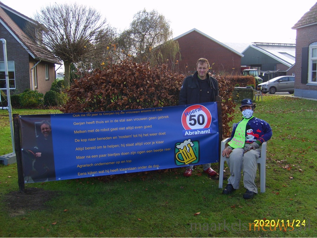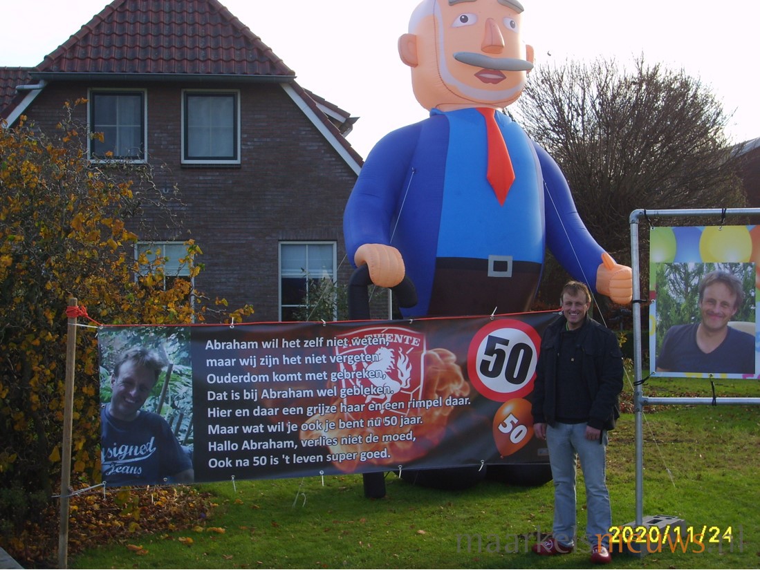 Door de op dit moment geldende coronamaatregelen verwachtte Gerjan Hoevink een rustige verjaardag tegemoet te gaan. Maar familieleden en vrienden hebben in oplossingen gedacht en niet in problemen. Zodoende werd Gerjan vandaag toch blij verrast en kreeg hij geen enkele kans om zijn 50e verjaardag ongemerkt aan zich voorbij te laten gaan. Zijn tuin werd bij toerbeurt versierd met een Abraham en spandoeken met daarop toepasselijke teksten voor deze kersverse vijftiger. Dit werd natuurlijk enorm gewaardeerd door deze Abraham. Gerjan: namens de familie nogmaals van harte gefeliciteerd met jouw 50e verjaardag.