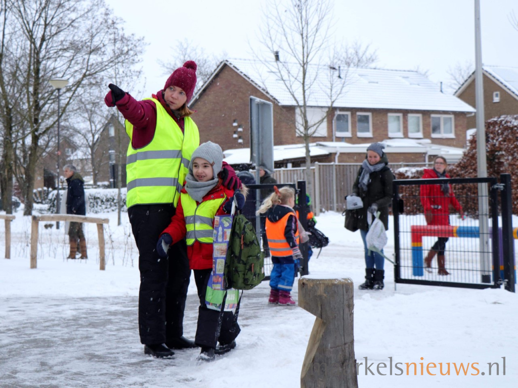 Vanmorgen was het dan zover, ook Basisschool de Welp ging open. De kinderen werden enthousiast ontvangen en van het hek tot aan de deur gebracht met de sleetaxi, met directeur Michèle Kraal aan het ‘stuur’. Ook de Welp heeft van deze eerste openingsdag op de nieuwe locatie aan de Koekoekslaan in Markelo een feestelijke gebeurtenis gemaakt. Met ballonnenpilaren bij de hoofdingang, samen met de kinderen proosten met champagne en lintjes doorknippen van de stamgroepen. Uiteraard wordt er vandaag ook heerlijk in de sneeuw gespeeld op deze prachtige winterdag. Kortom: een feestelijke dag voor de kinderen van de Welp met een sneeuwwit randje.